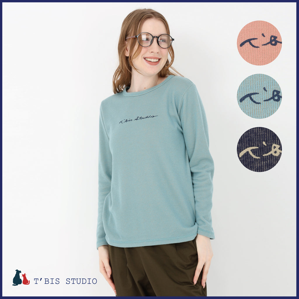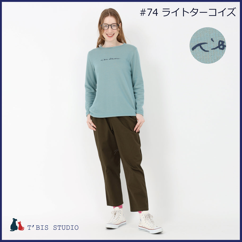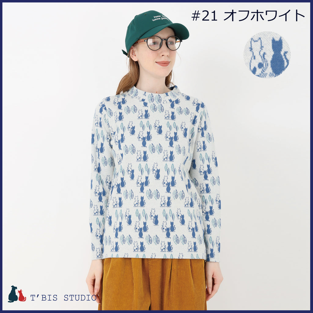 【LLサイズあり】長袖ふくれジャカードネコ刺繍ハイネックカットソー 156657