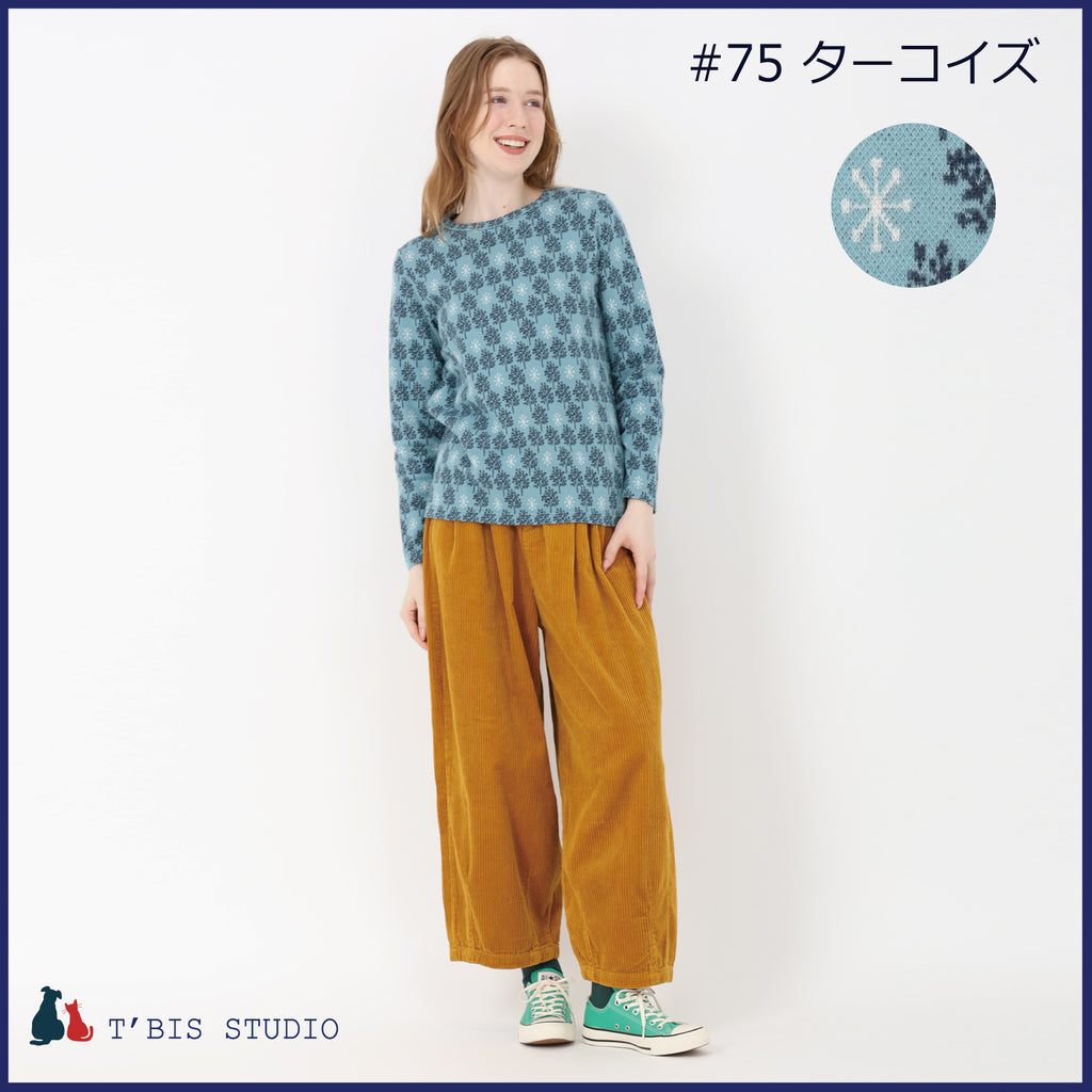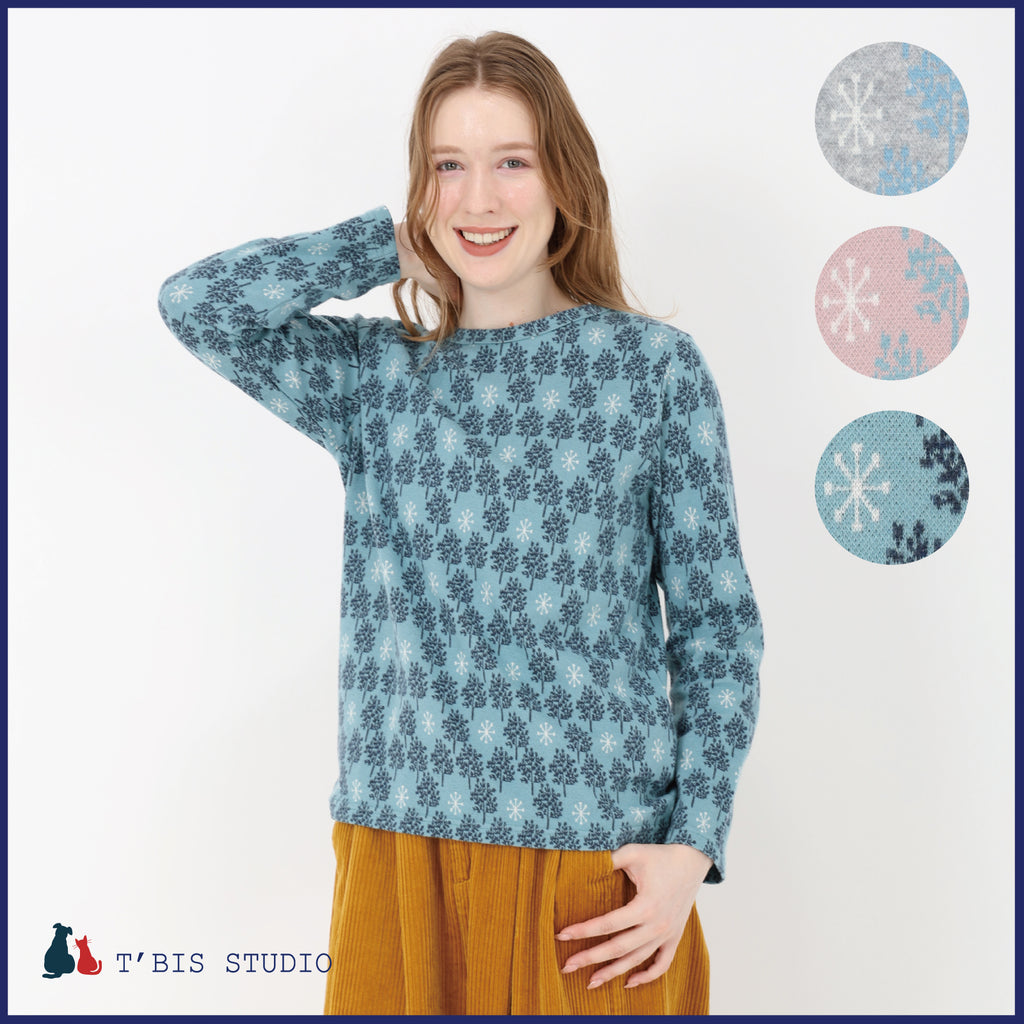 【日本製】長袖ウィンターツリー柄微起毛Wジャガードカットソー 157403