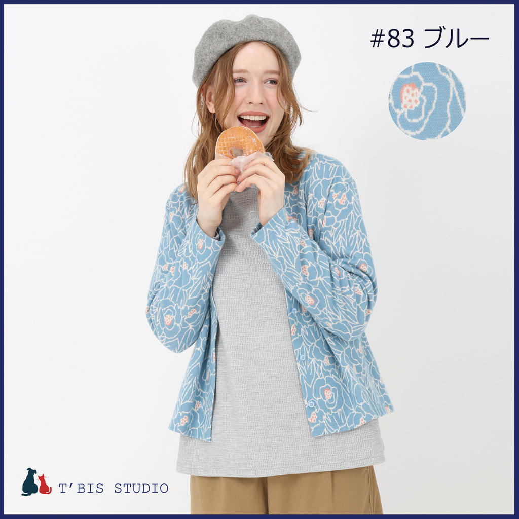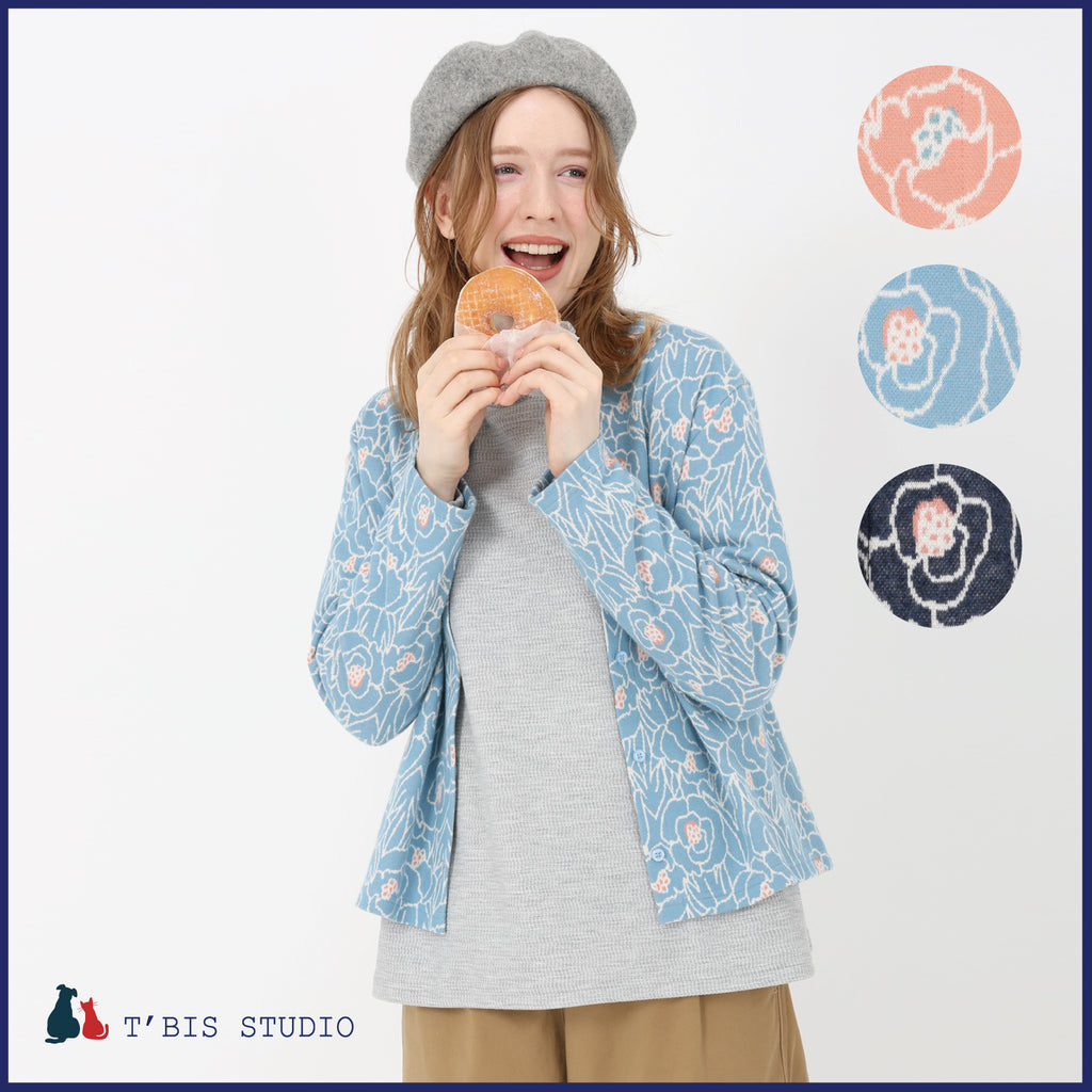 【LLサイズあり】【日本製】長袖花咲く微起毛Wジャカードカーディガン 157404
