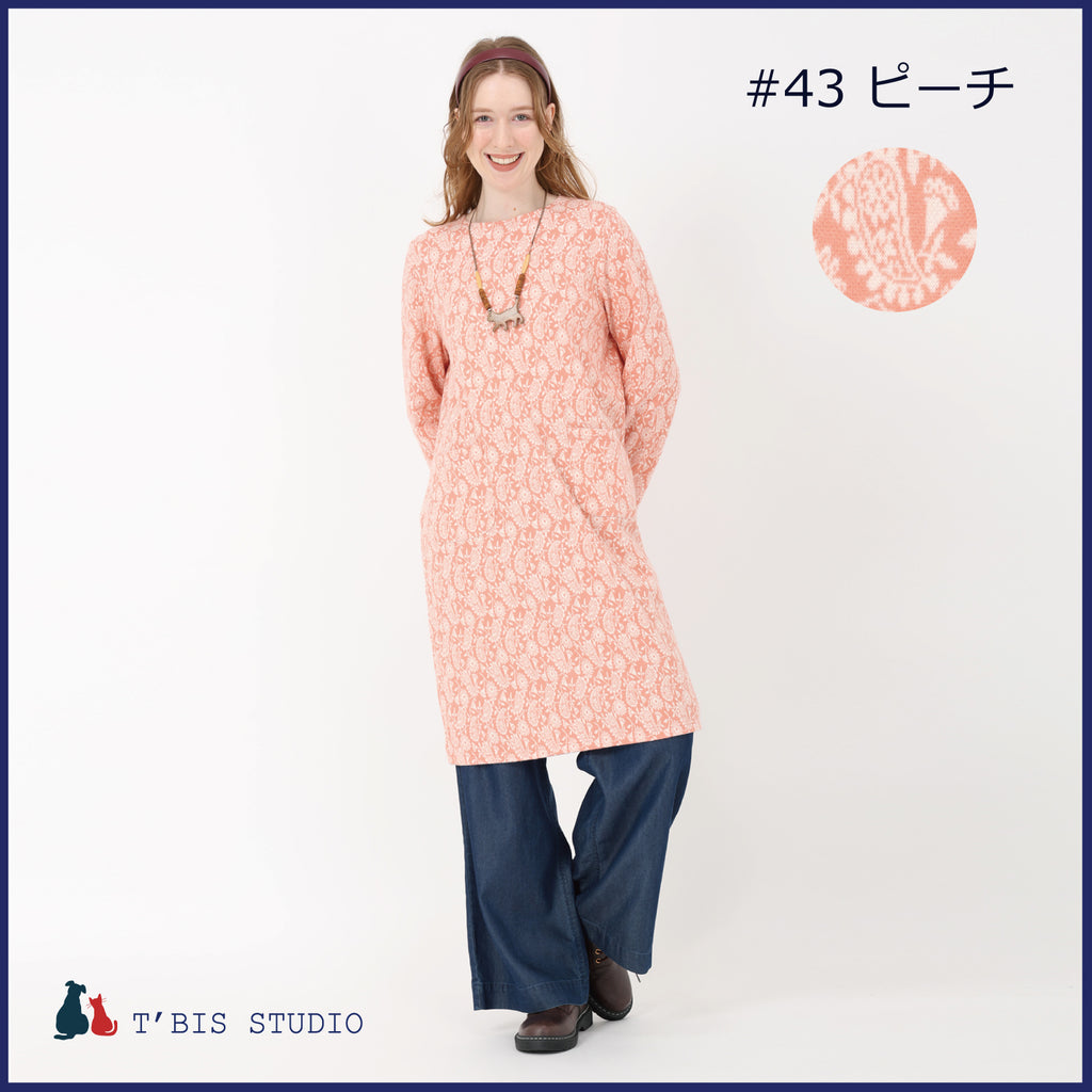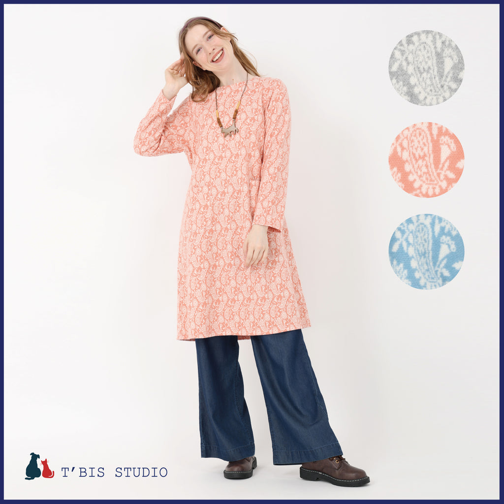 【日本製】長袖ペイズリー柄微起毛Wジャカードワンピース 157408