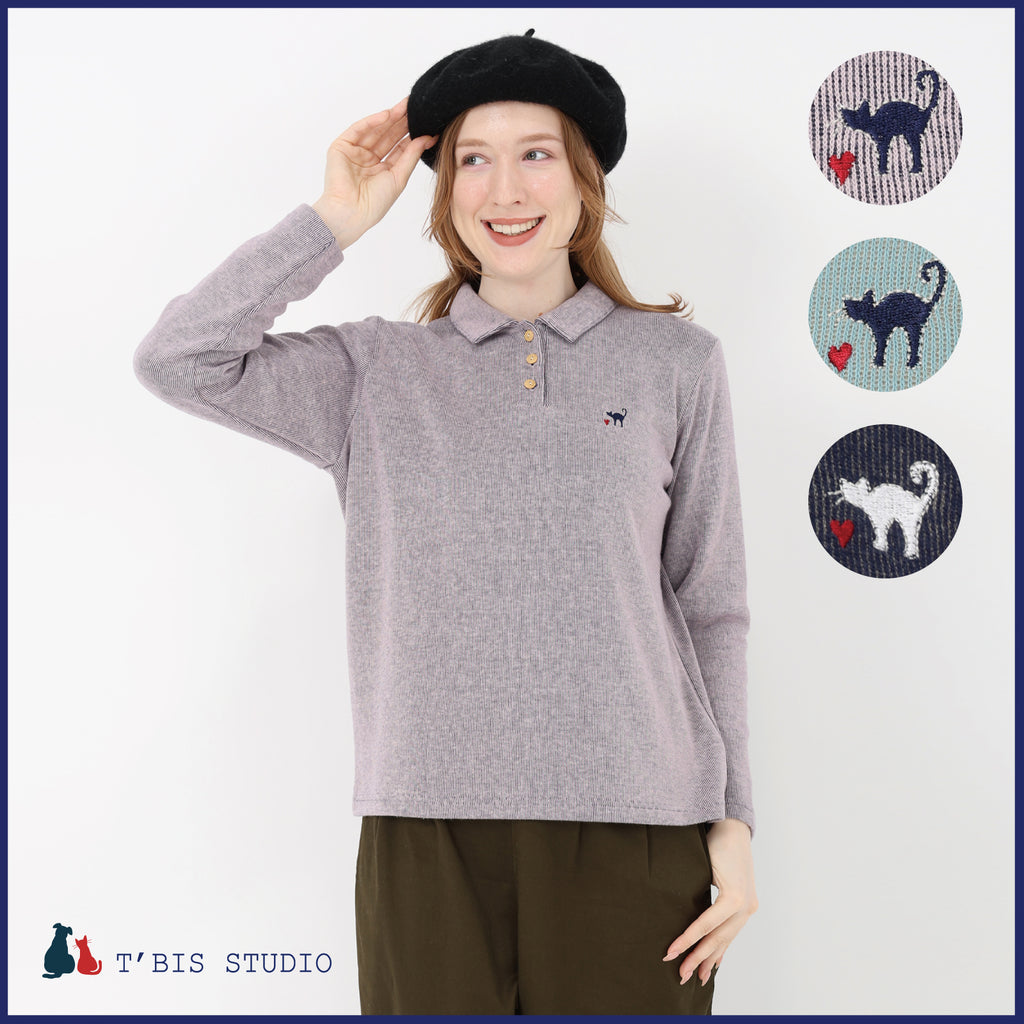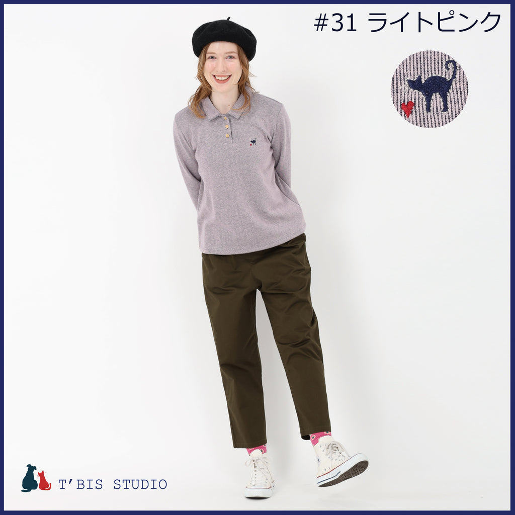 【日本製】長袖おさんぽネコ刺繍ダブルフェイスポロシャツ 157505