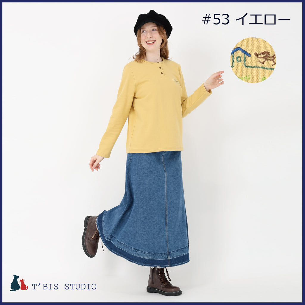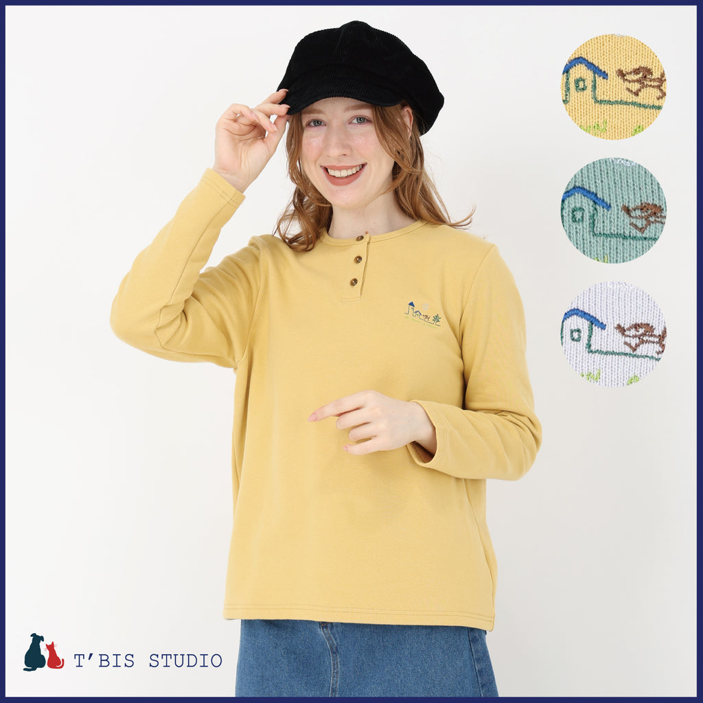 【日本製】長袖うちのワンコ刺繍ヘンリーネック裏毛プルオーバー 157512