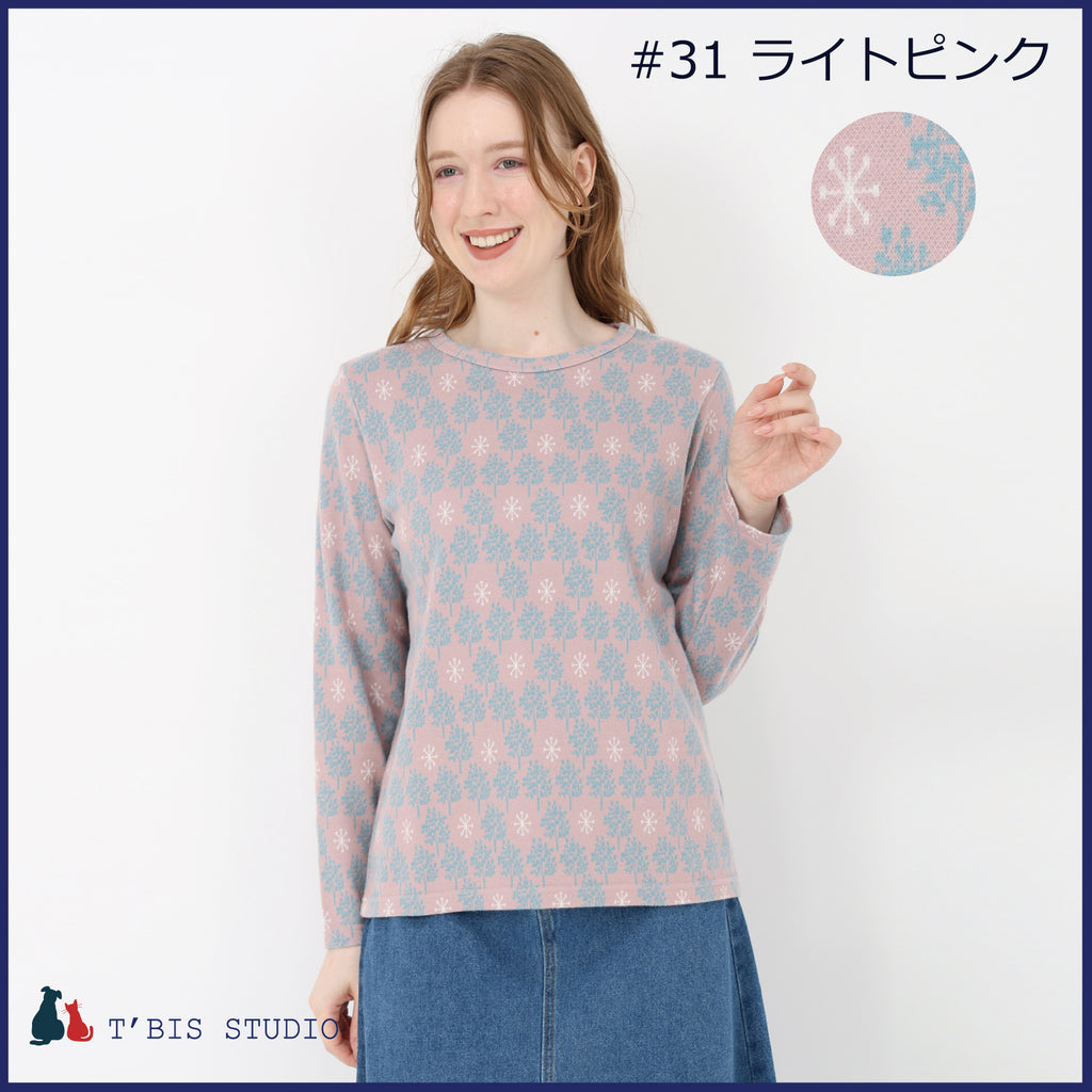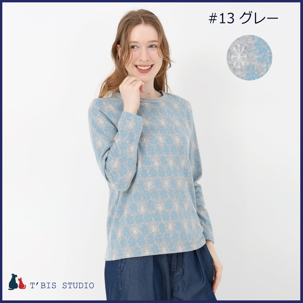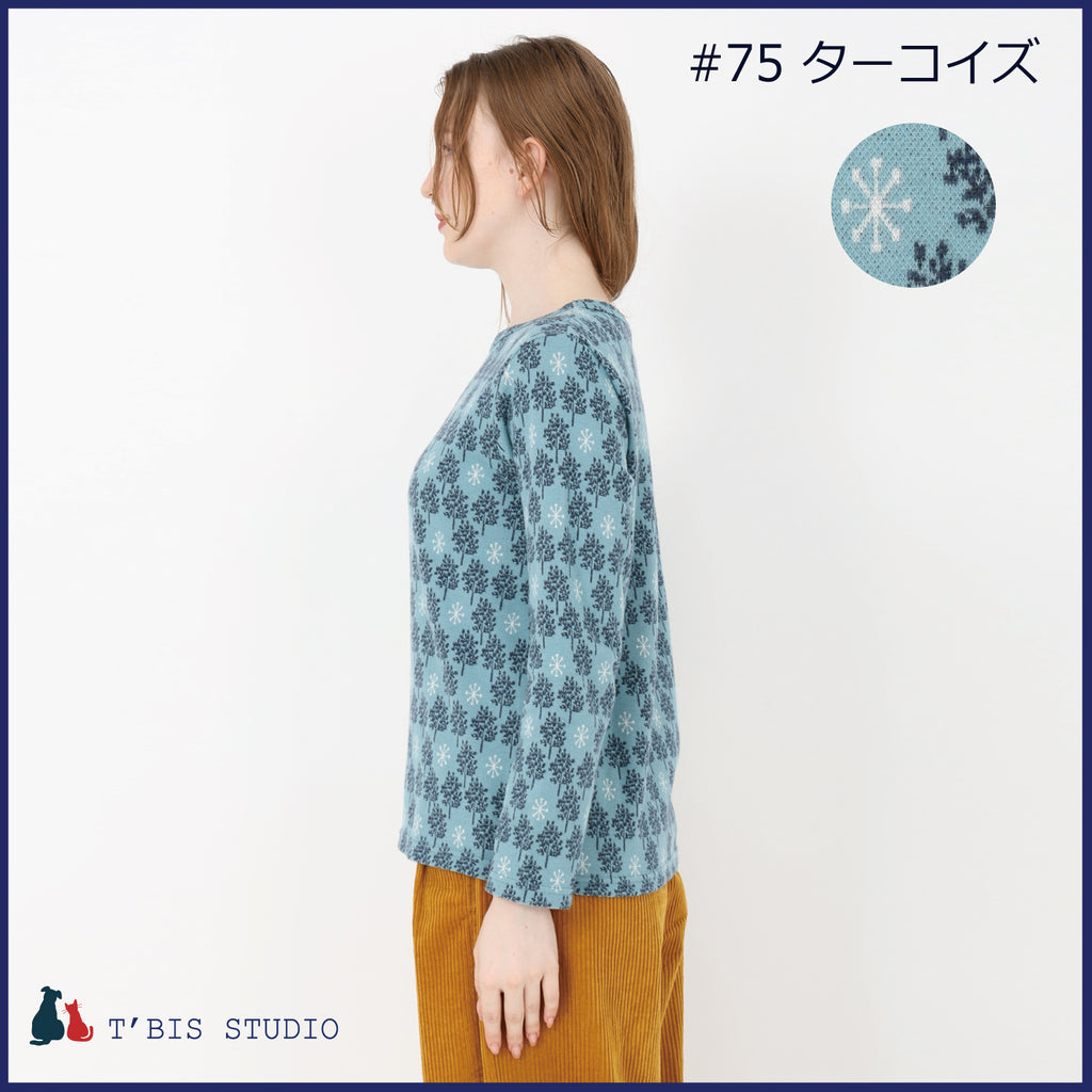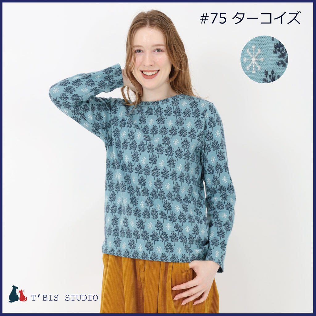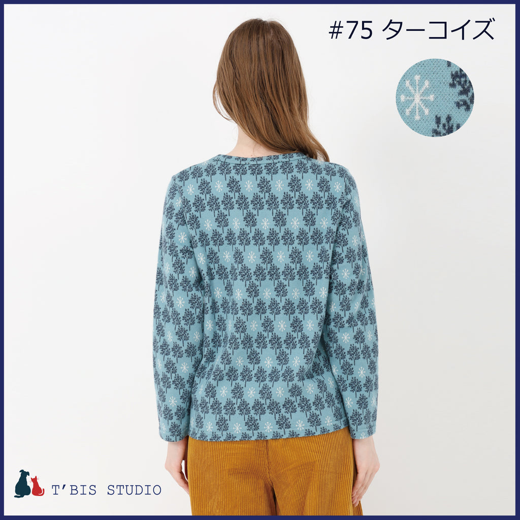 【日本製】長袖ウィンターツリー柄微起毛Wジャガードカットソー 157403