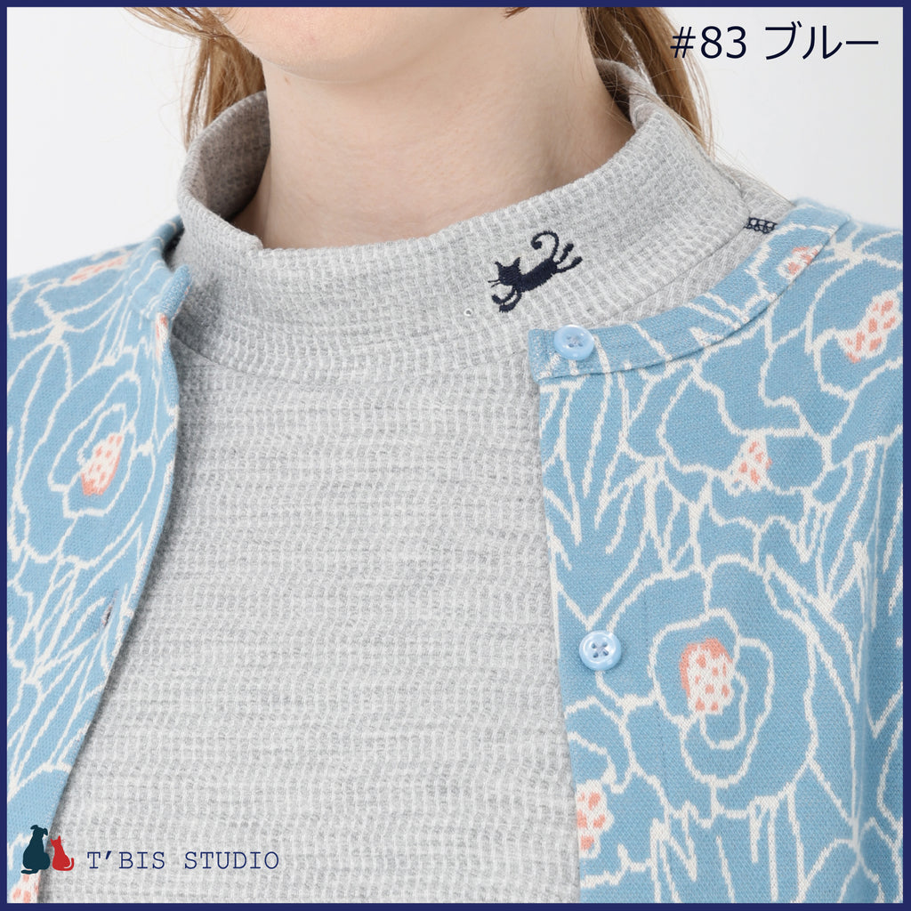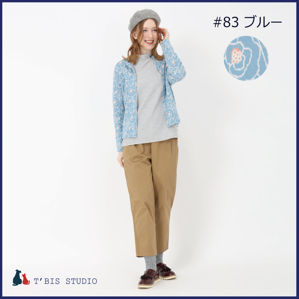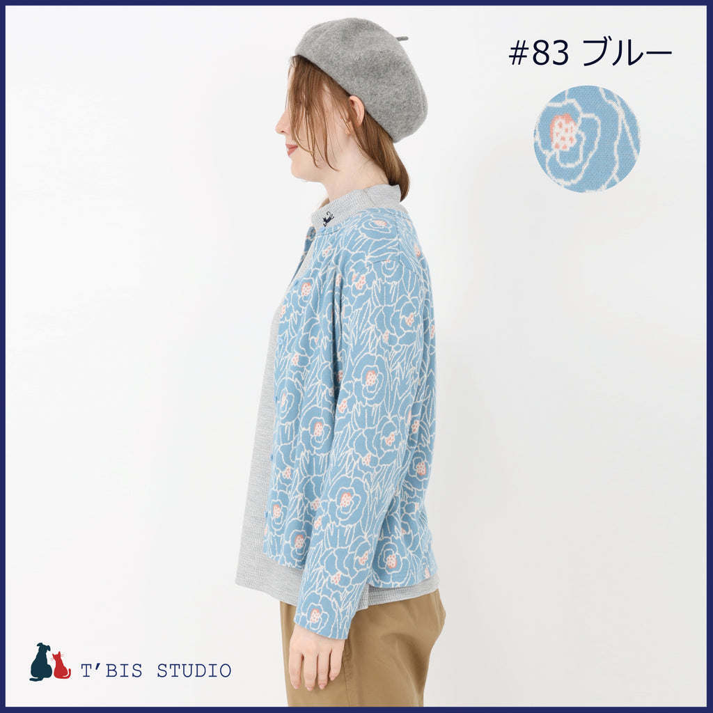 ・大きな花柄をジャガード織りで表現した、華やかなカーディガンで顔周りをぱっと明るくしてくれます。
