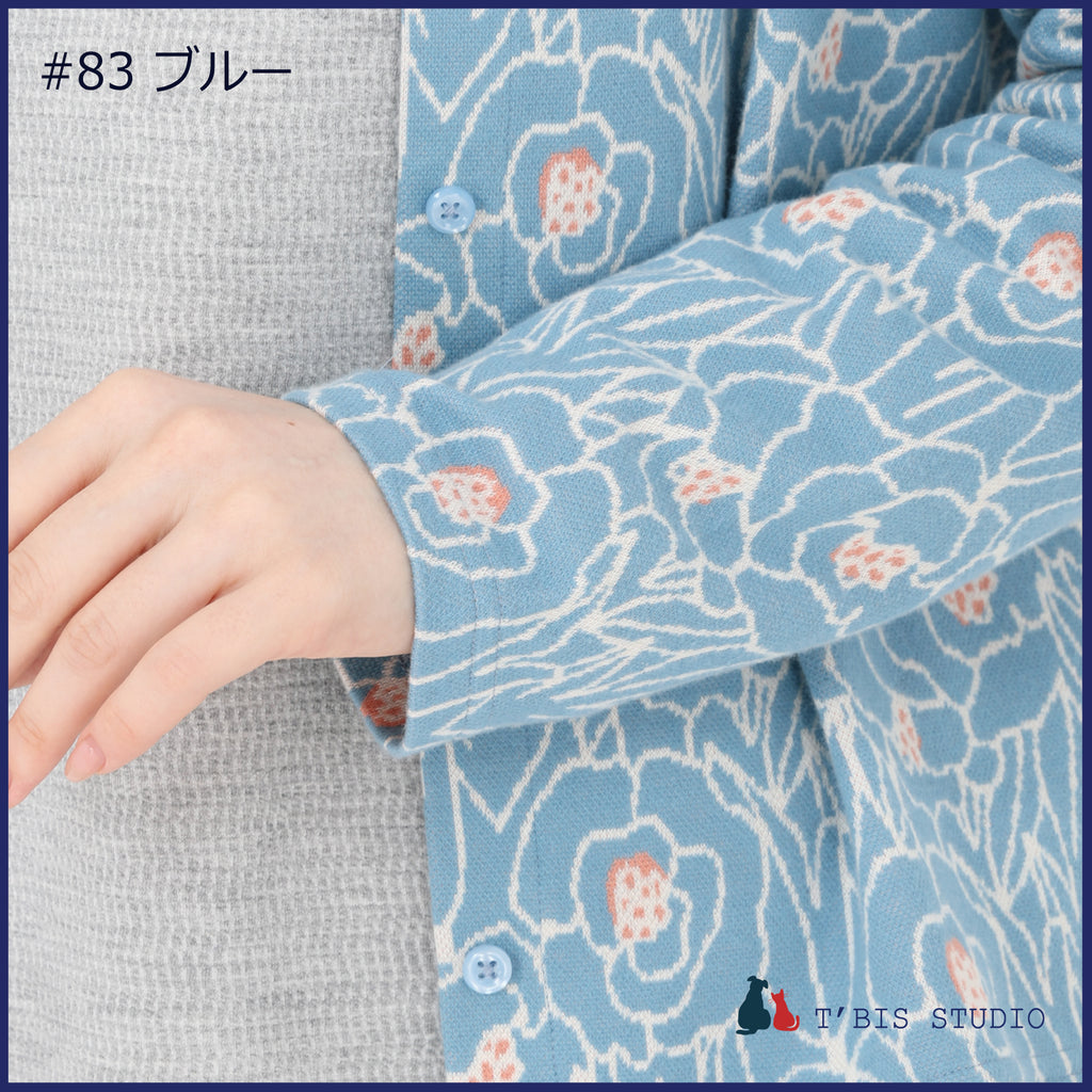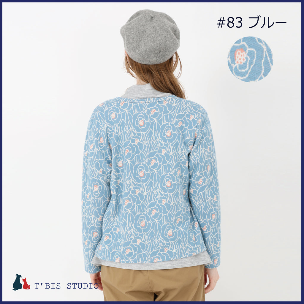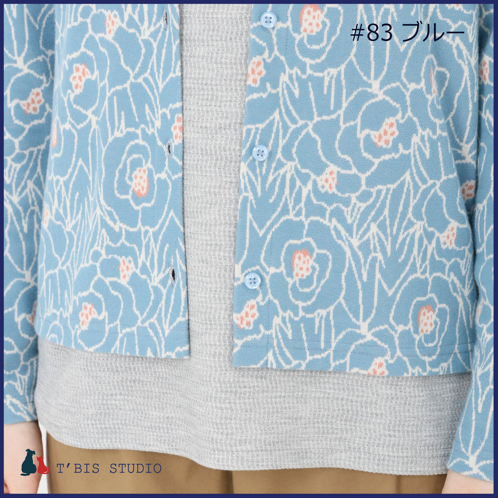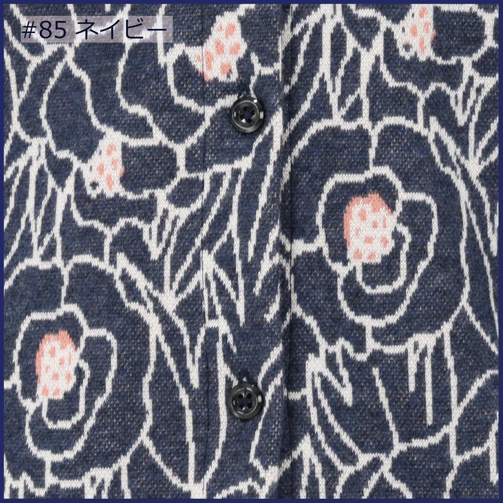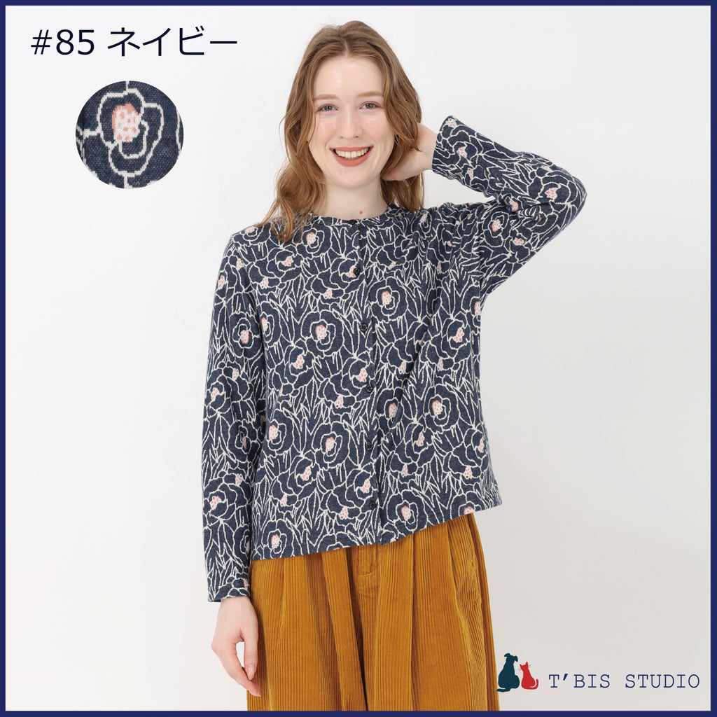 【LLサイズあり】【日本製】長袖花咲く微起毛Wジャカードカーディガン 157404