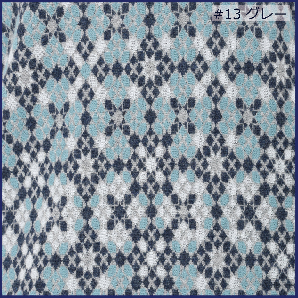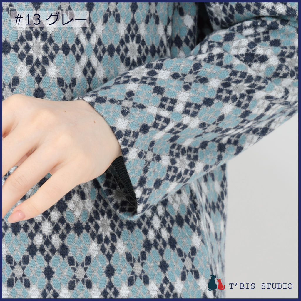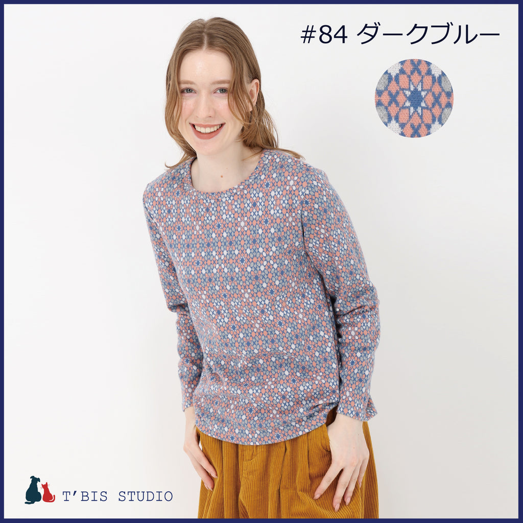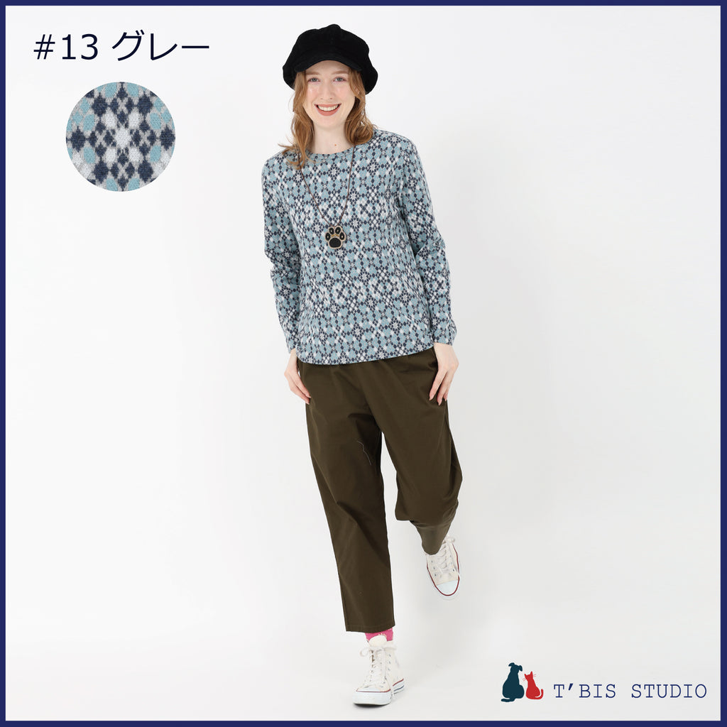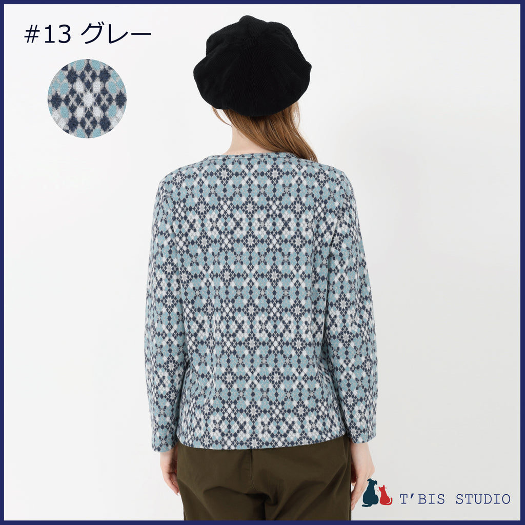 【日本製】長袖モザイク幾何柄微起毛Wジャカードクルーネックカットソー 157407