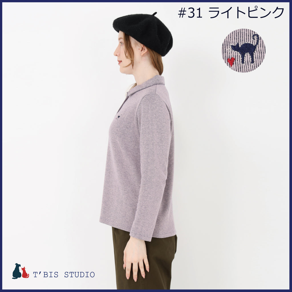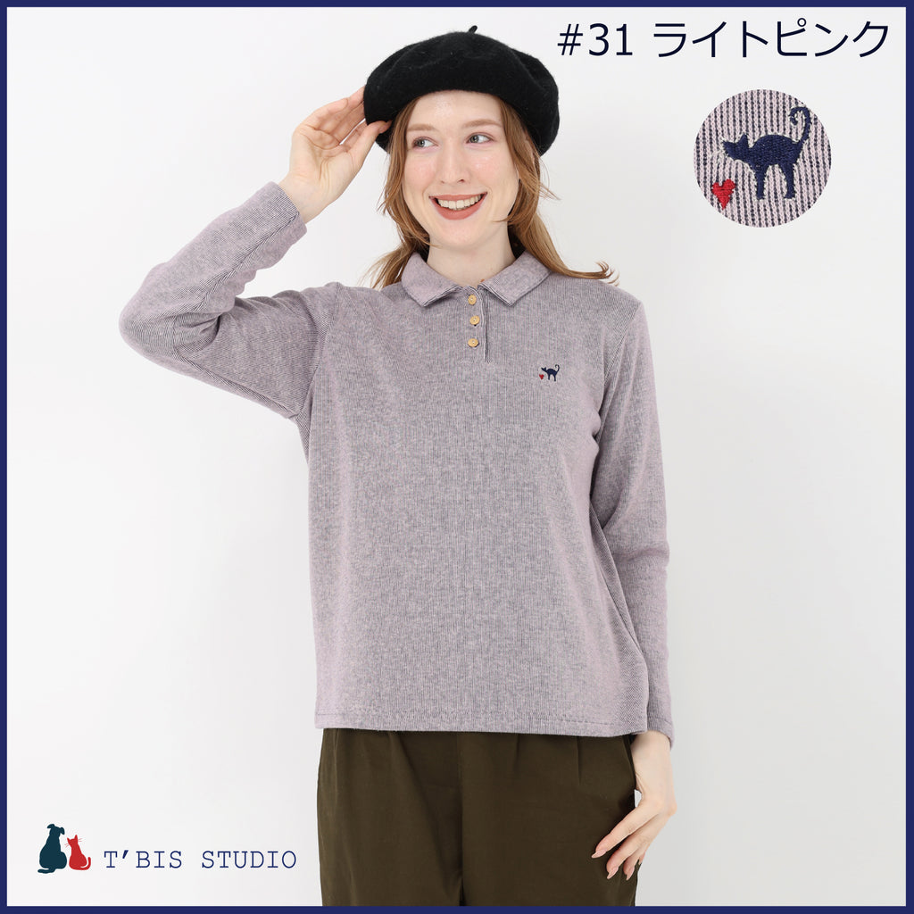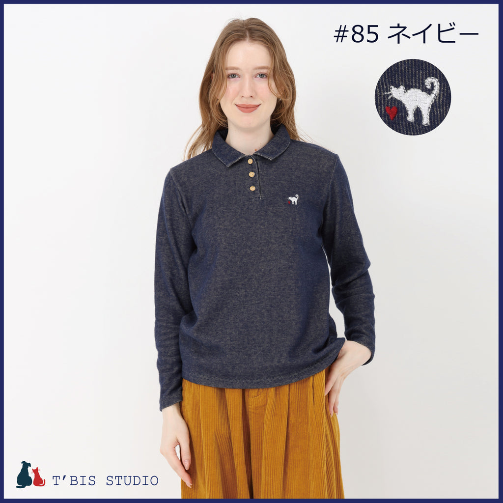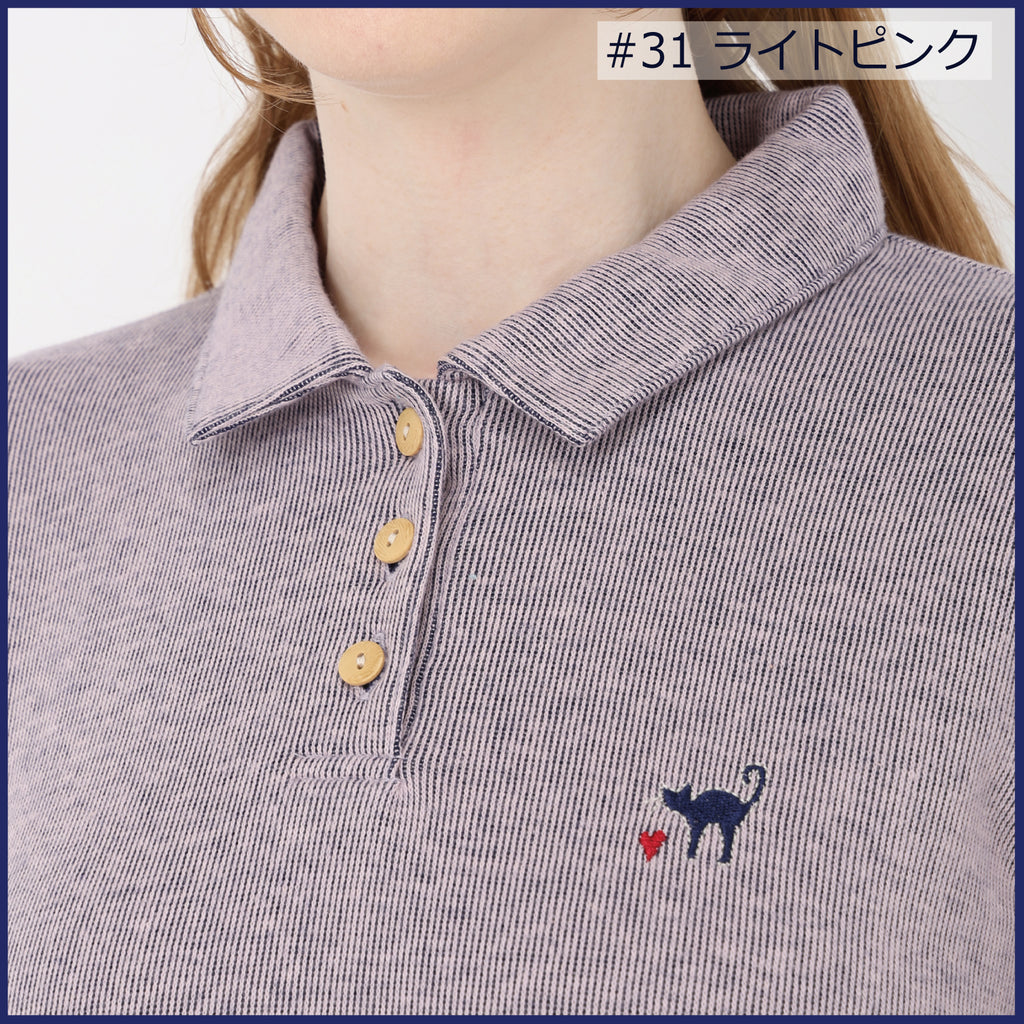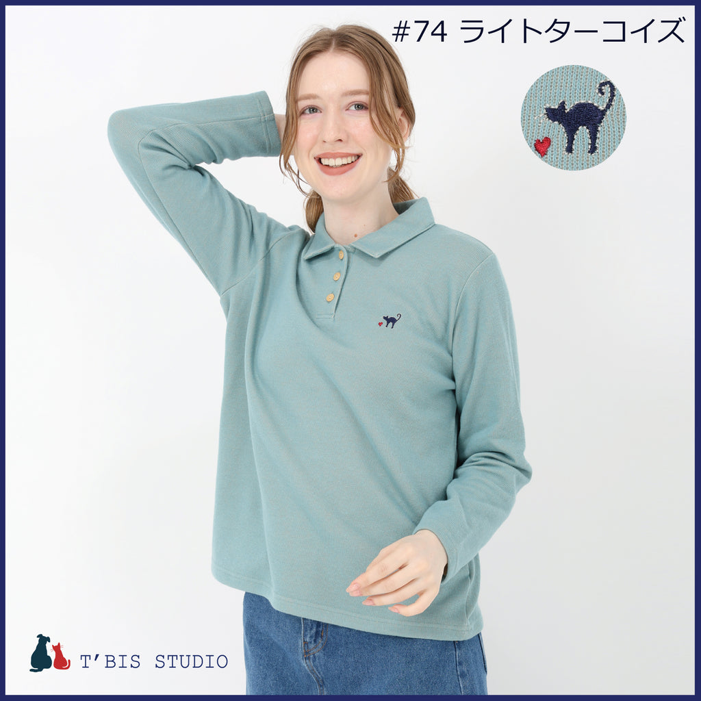 【日本製】長袖おさんぽネコ刺繍ダブルフェイスポロシャツ 157505
