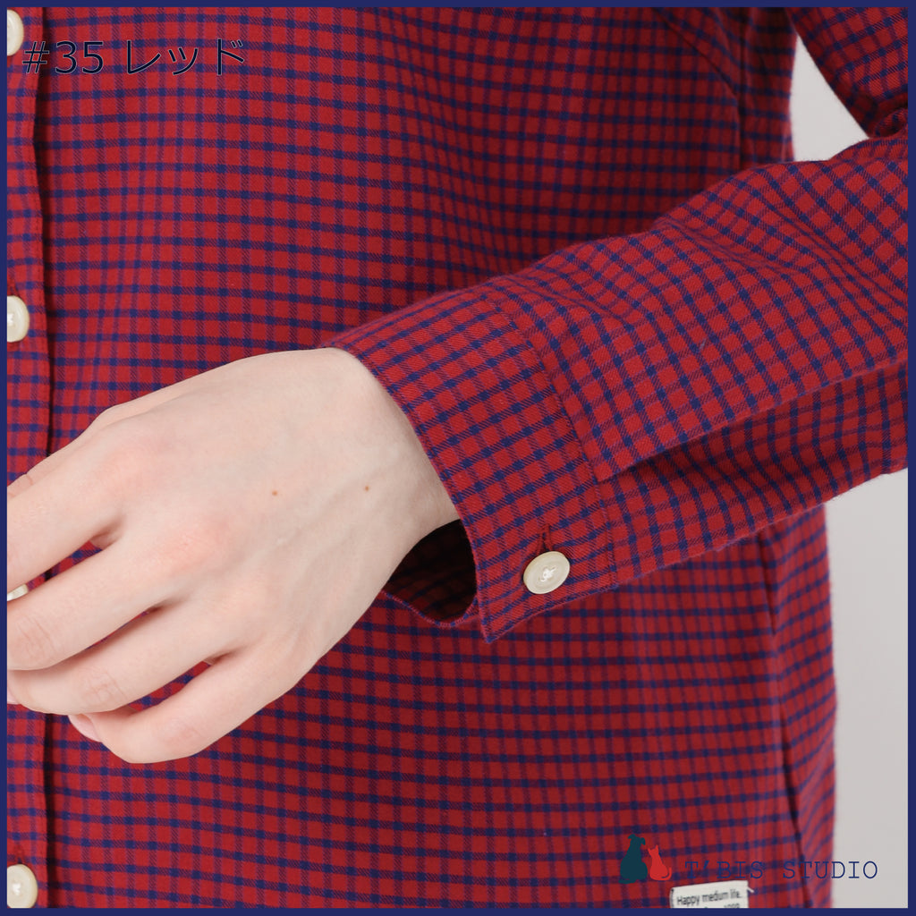 【日本製】長袖ピーチ起毛グラフチェックスタンドカラーシャツ 158102