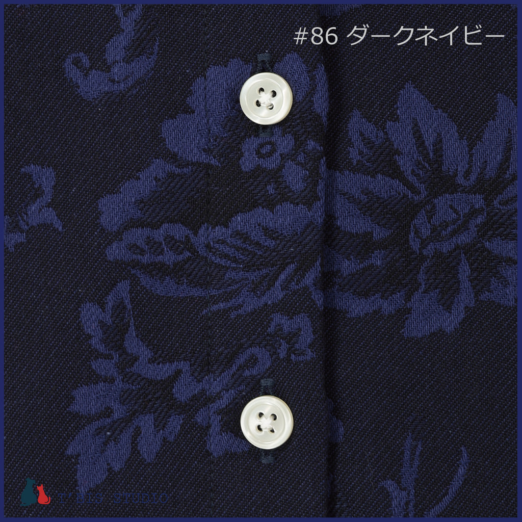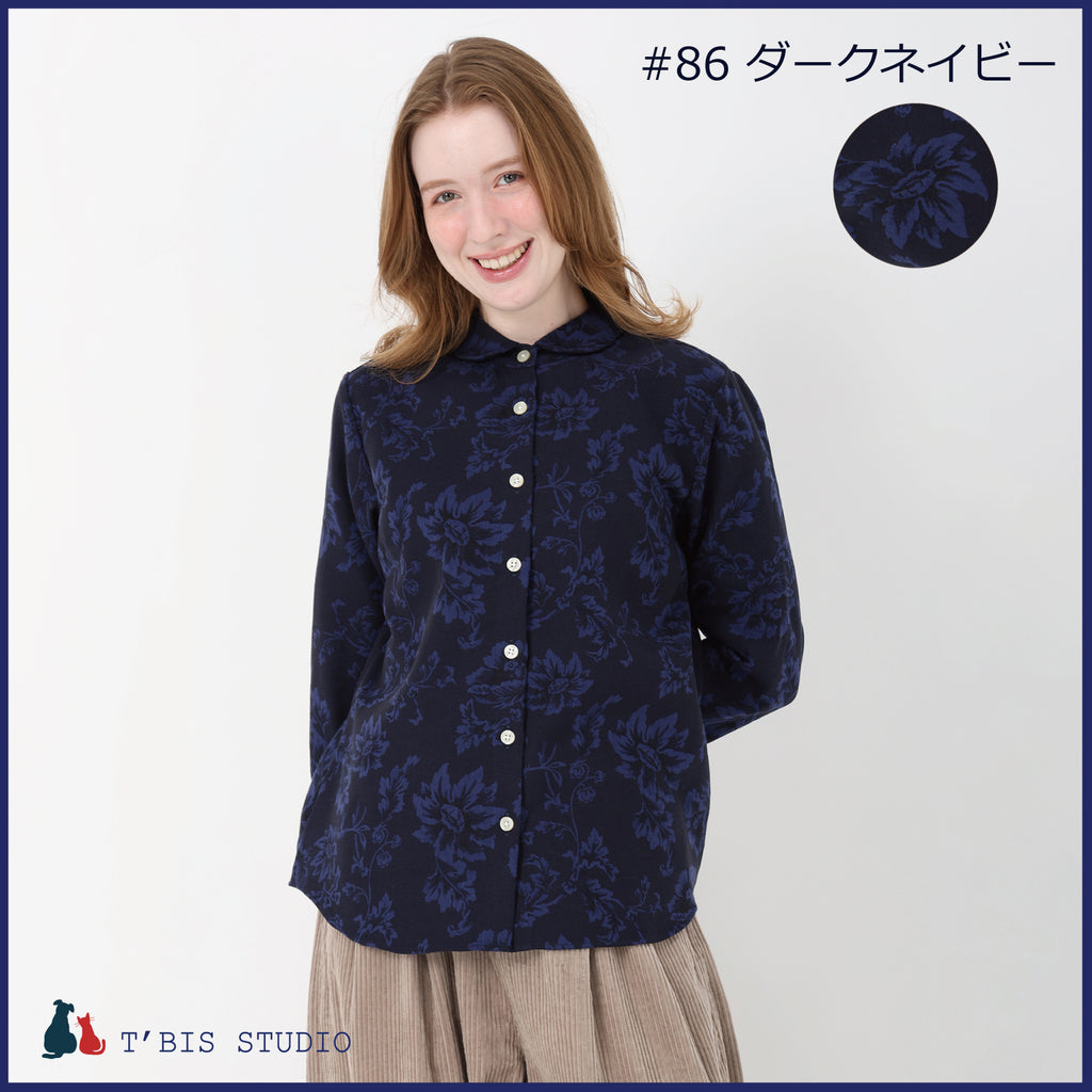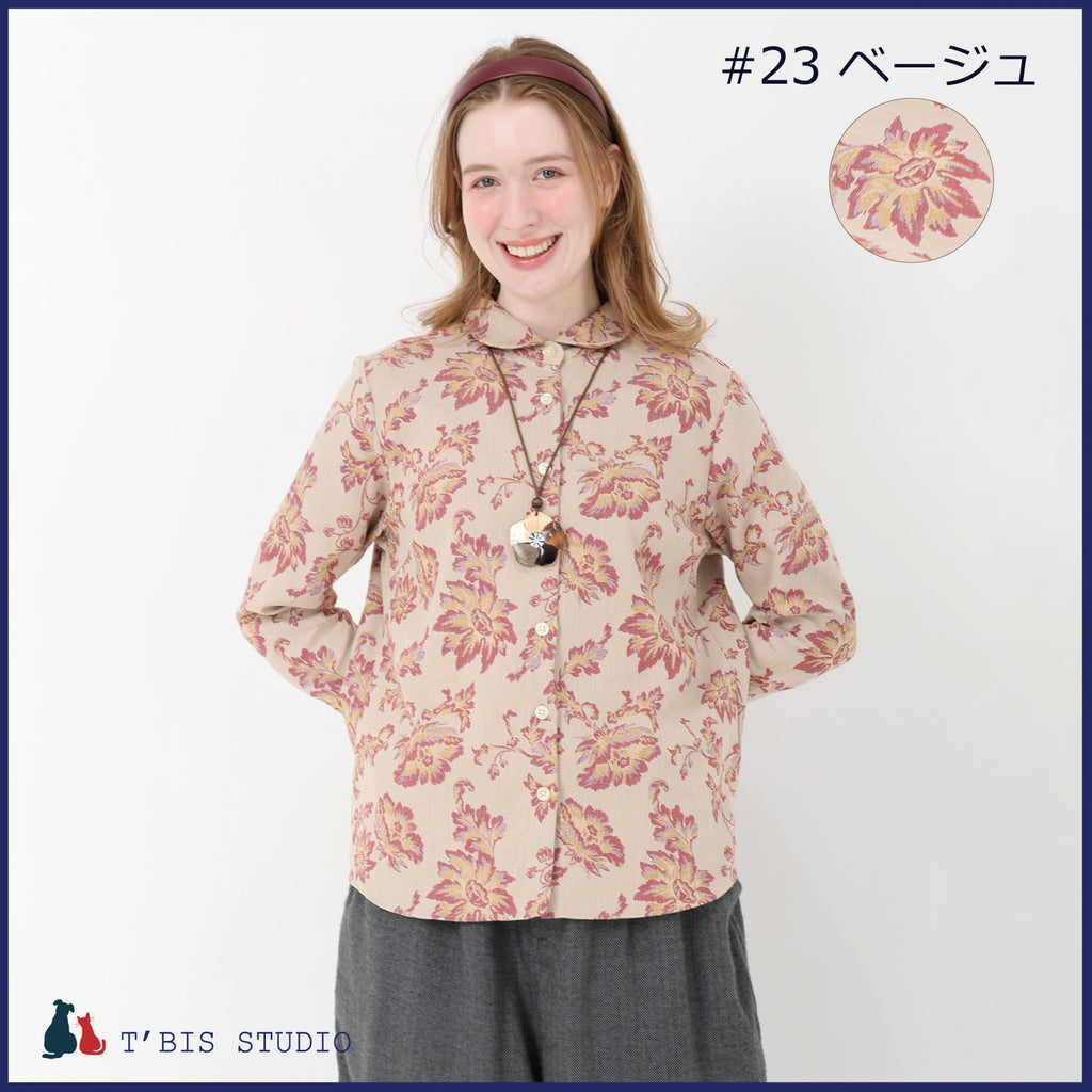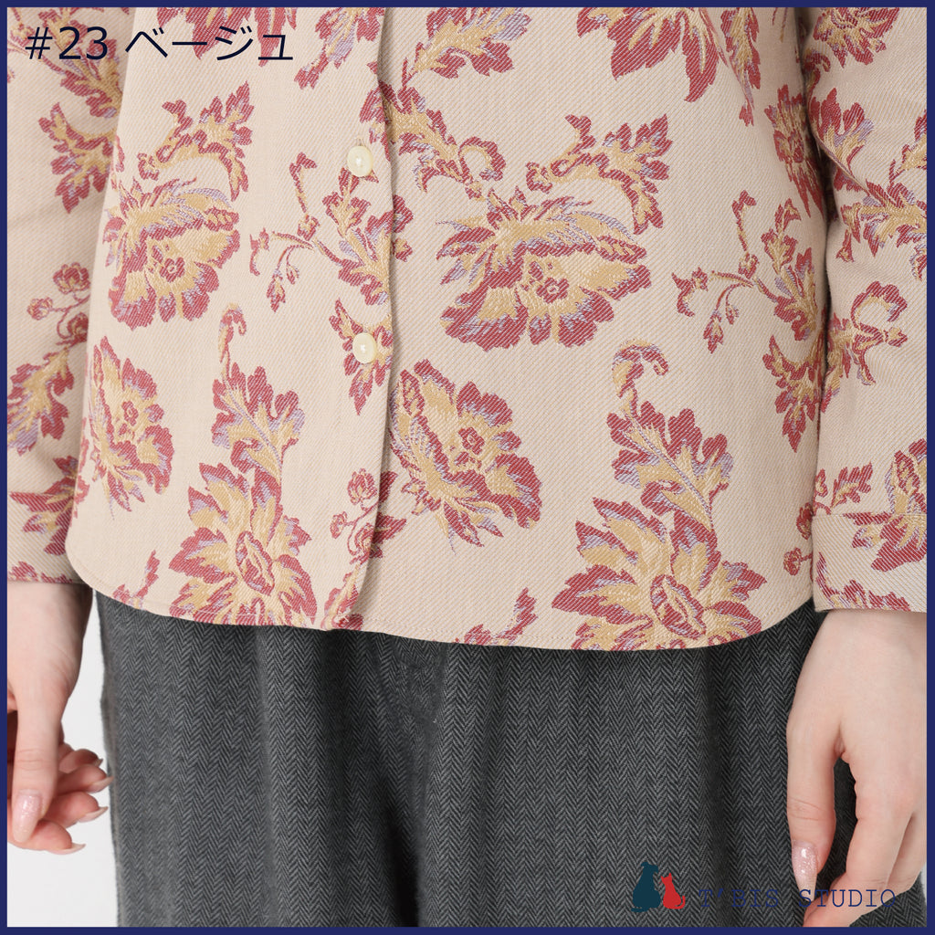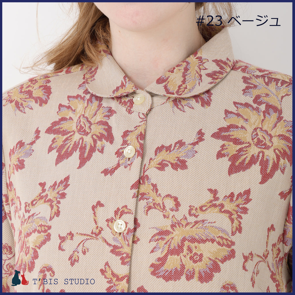 【日本製】長袖フローラルジャガード織丸襟シャツ 158104