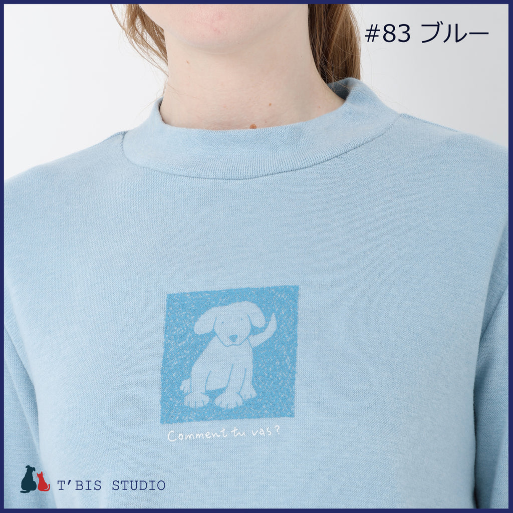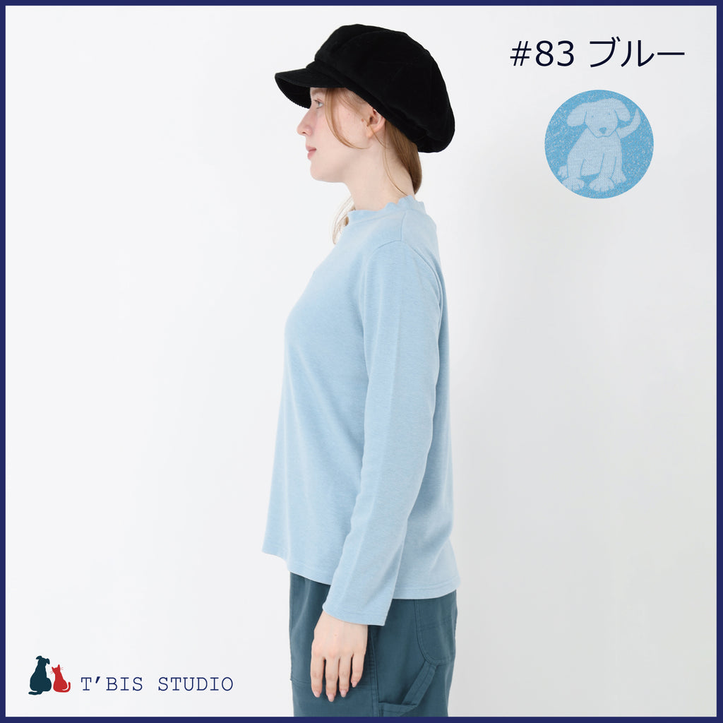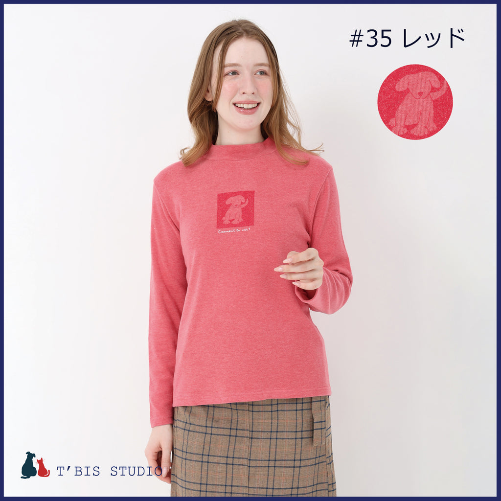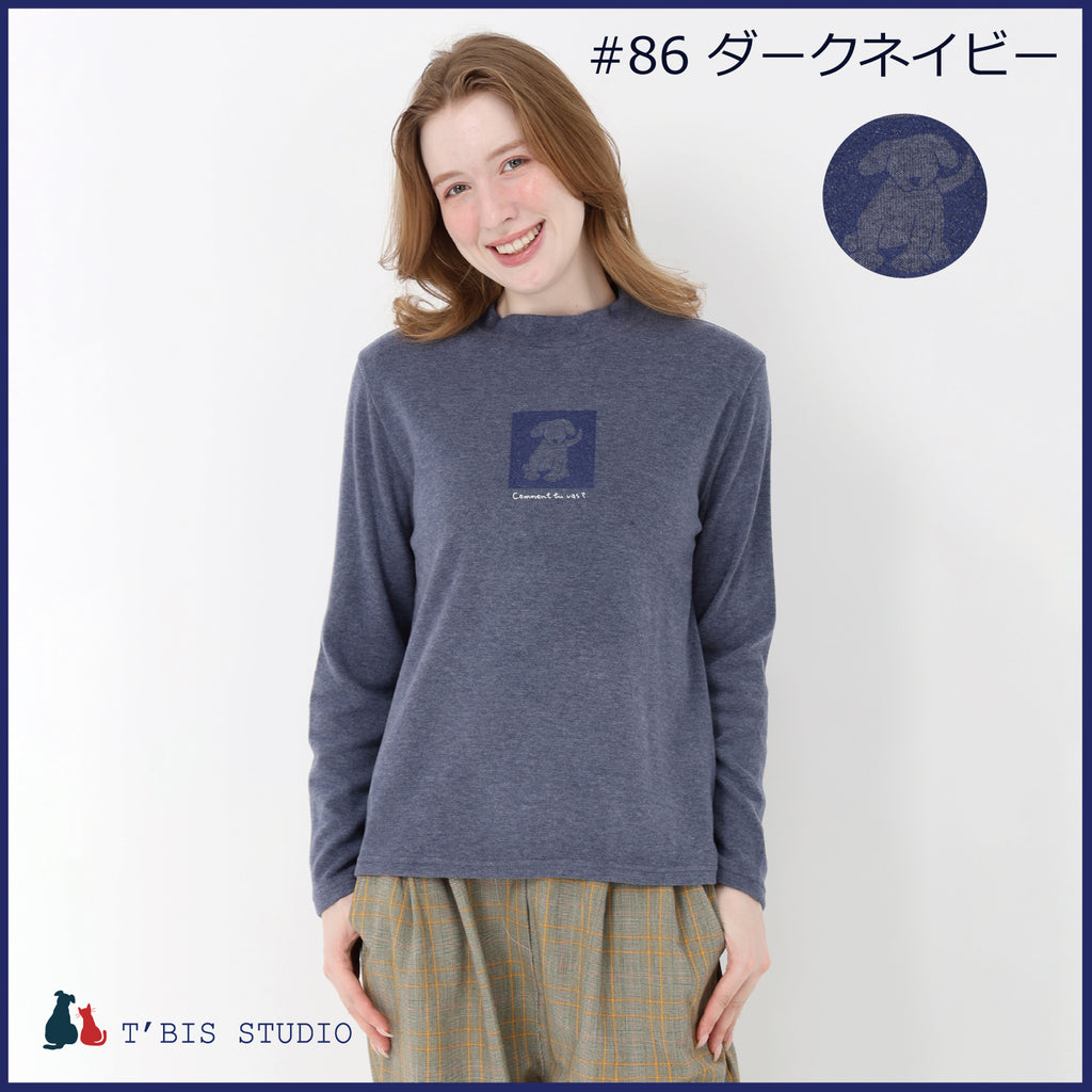 【日本製】長袖ピーチ起毛イヌプリントハイネックカットソー 158505