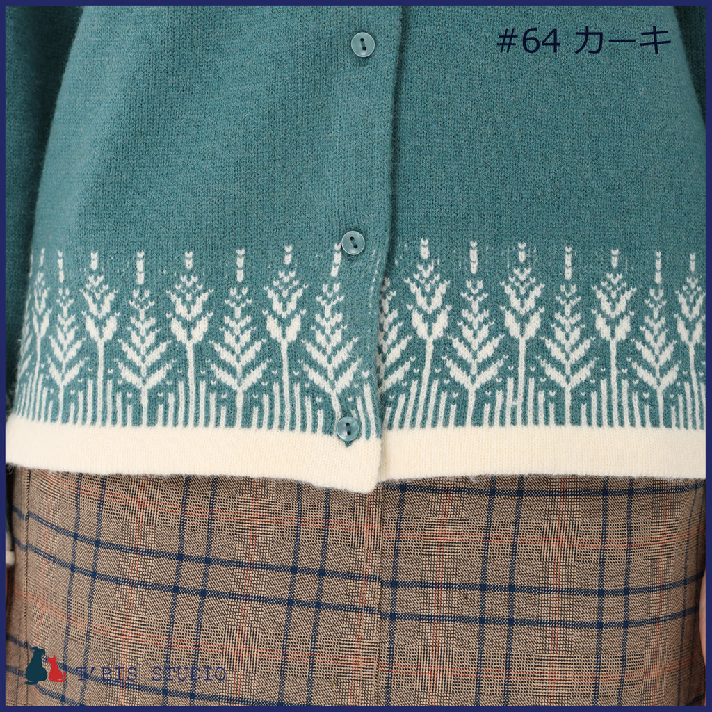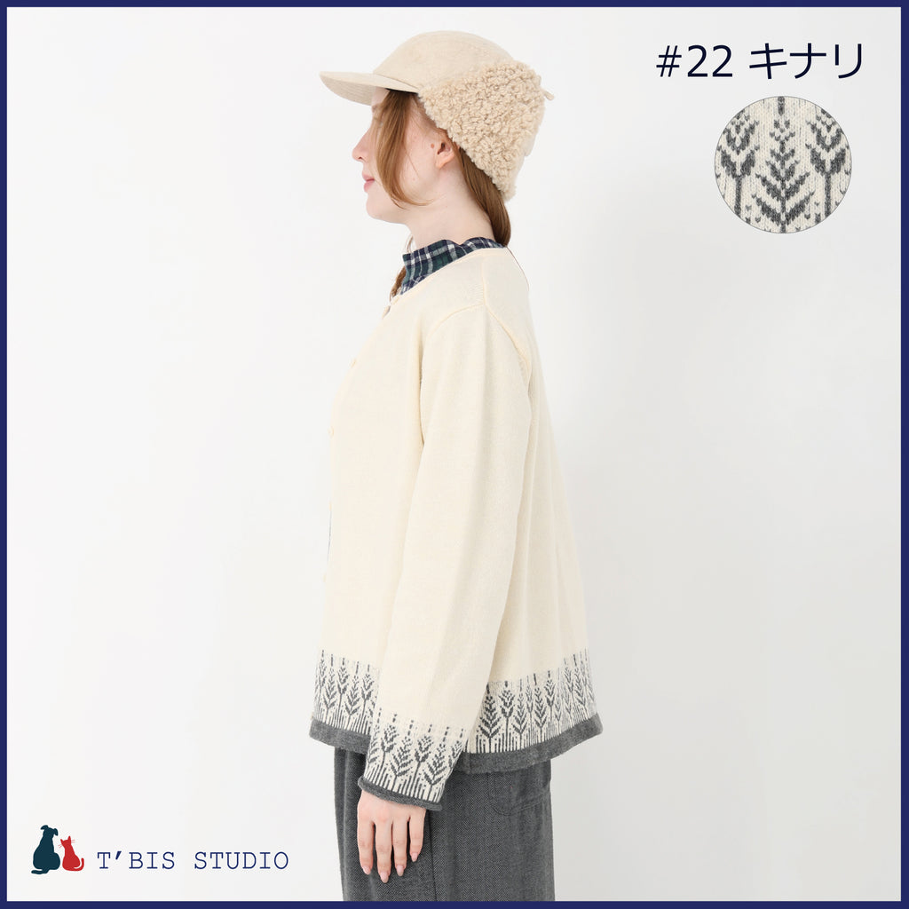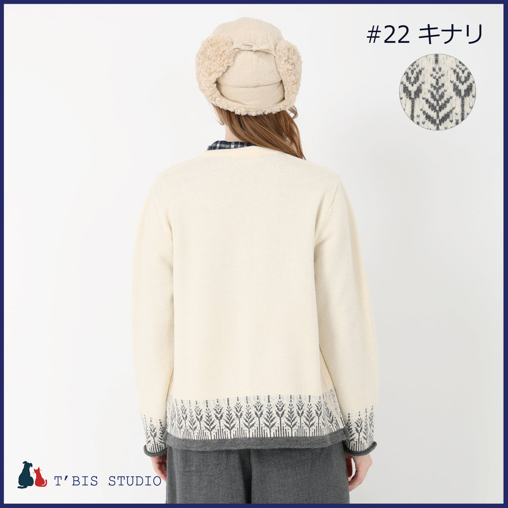 【LLサイズあり】長袖ウール混ムスカリ柄ジャガードカーディガン 158707