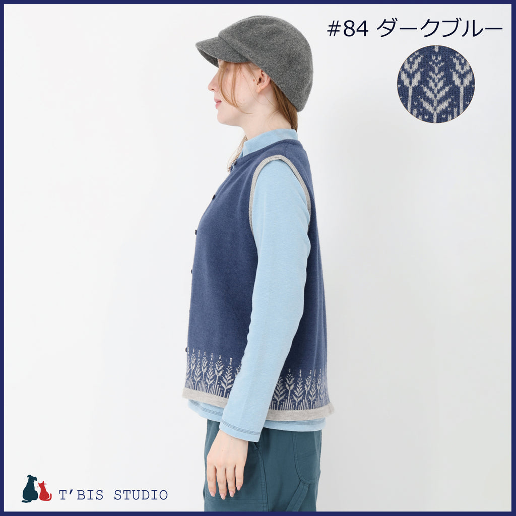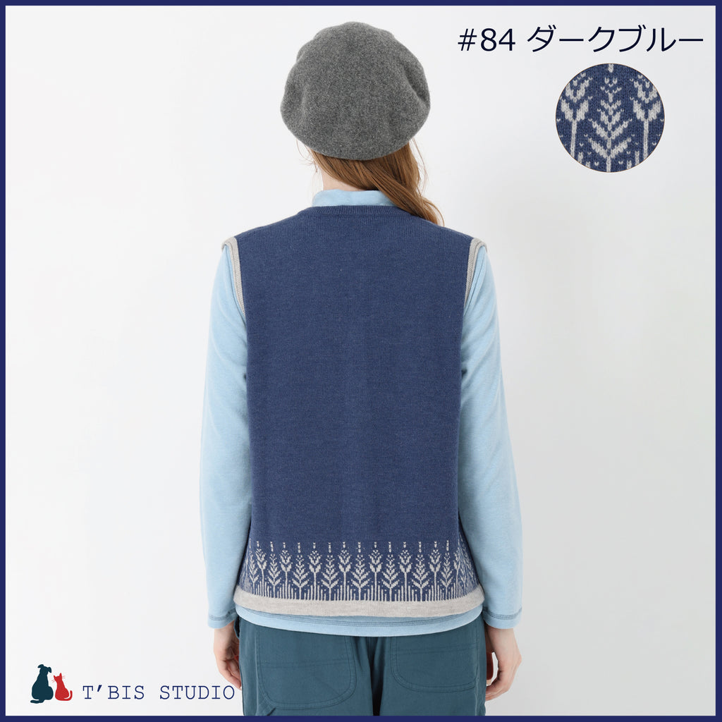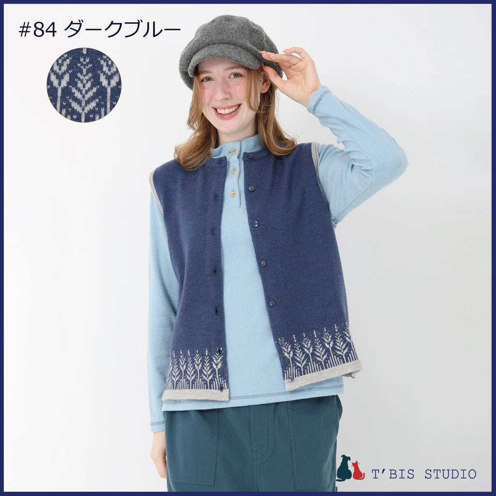 【LLサイズあり】ウール混ムスカリ柄ジャガードベスト 158708