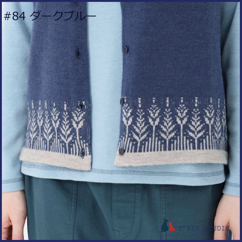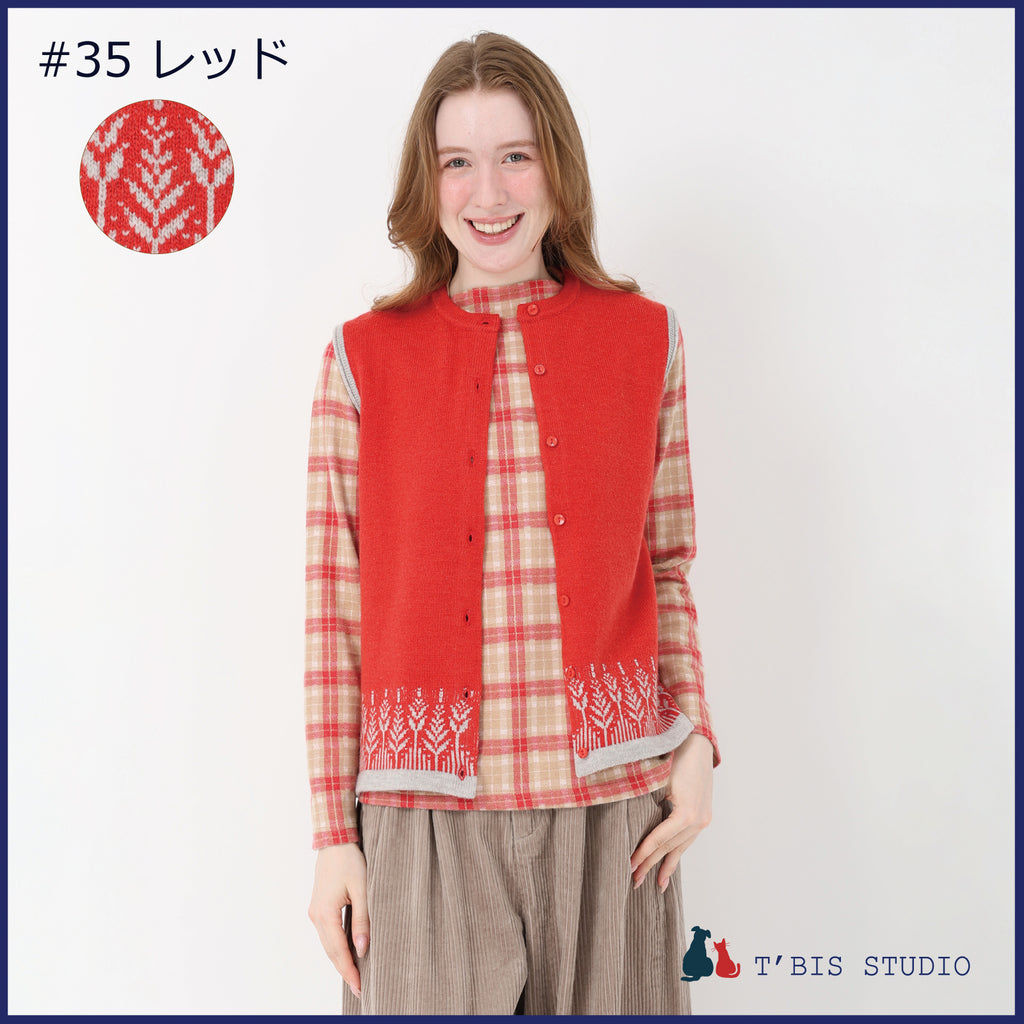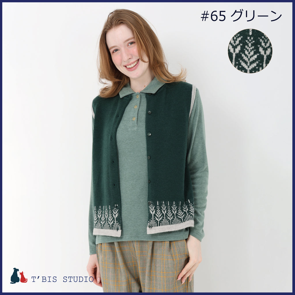 【LLサイズあり】ウール混ムスカリ柄ジャガードベスト 158708