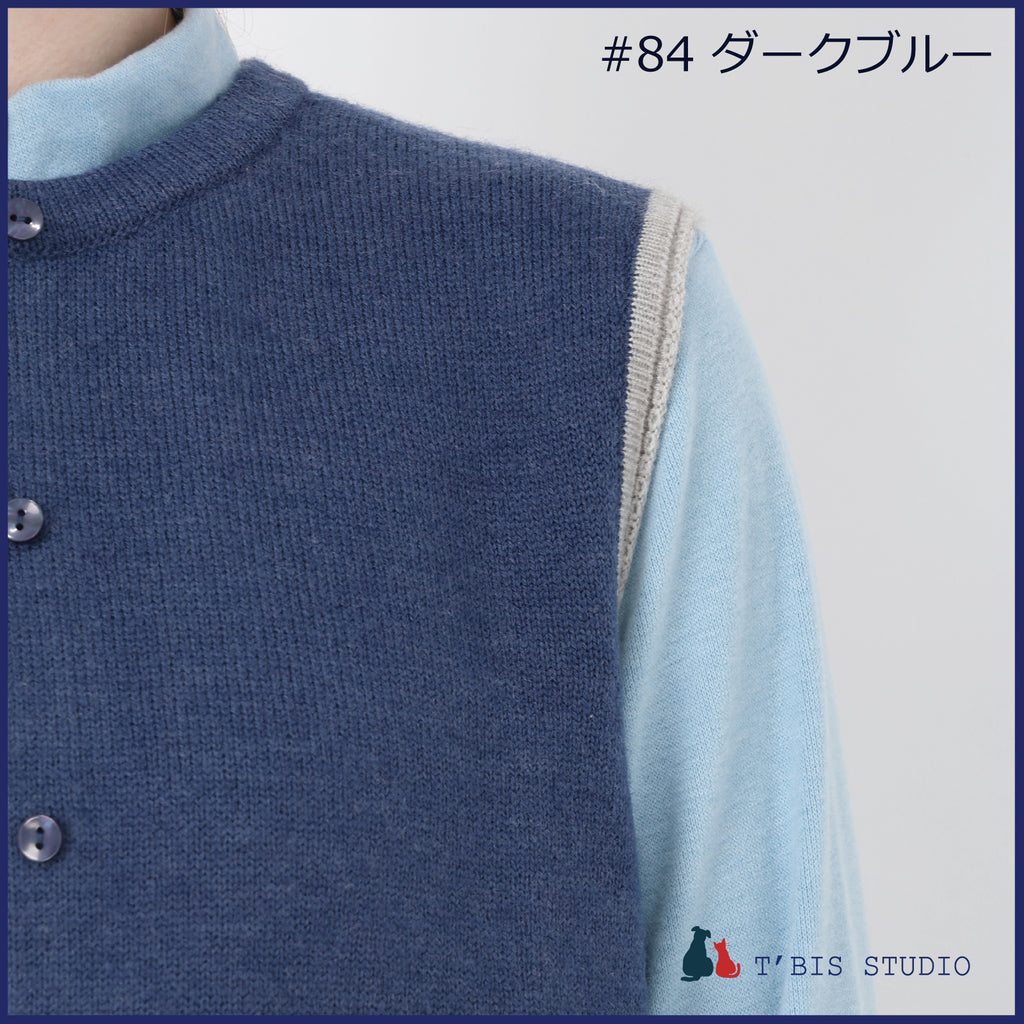 ・裾にムスカリ柄のジャガードをバイカラーで表現した上品で存在感のあるニットベストです。