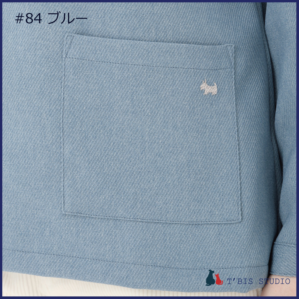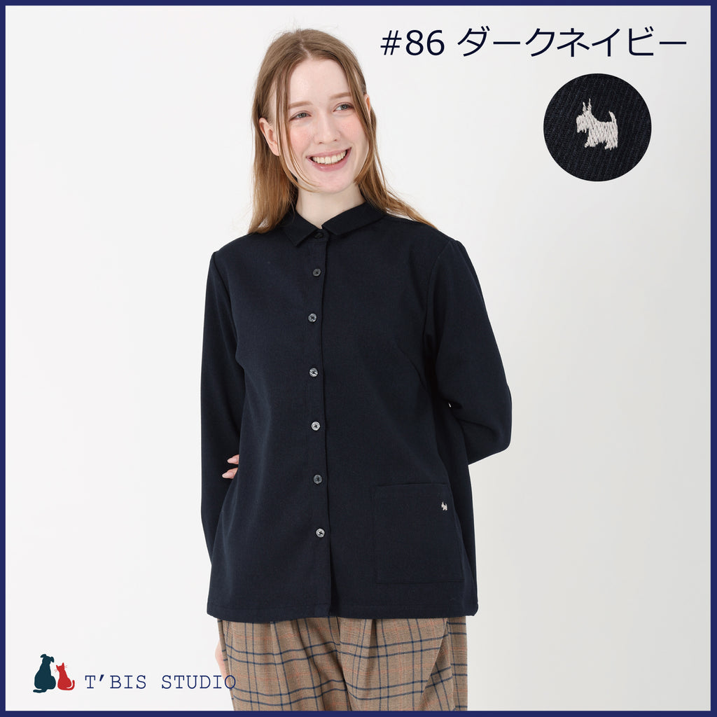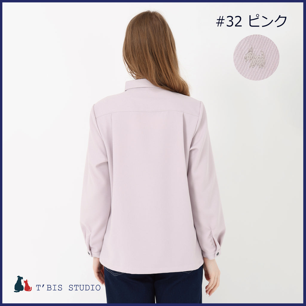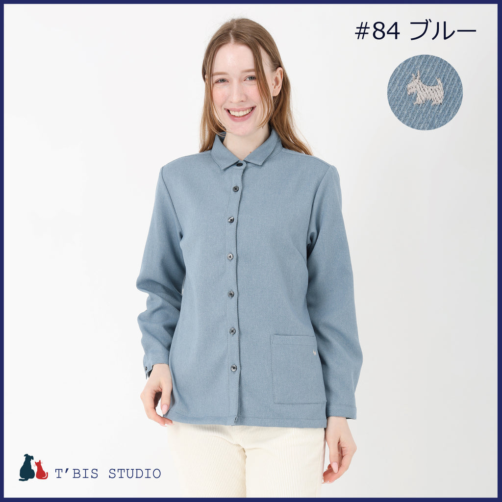 【日本製】長袖ウールライク テリア刺繍ポケット付シャツ 160103