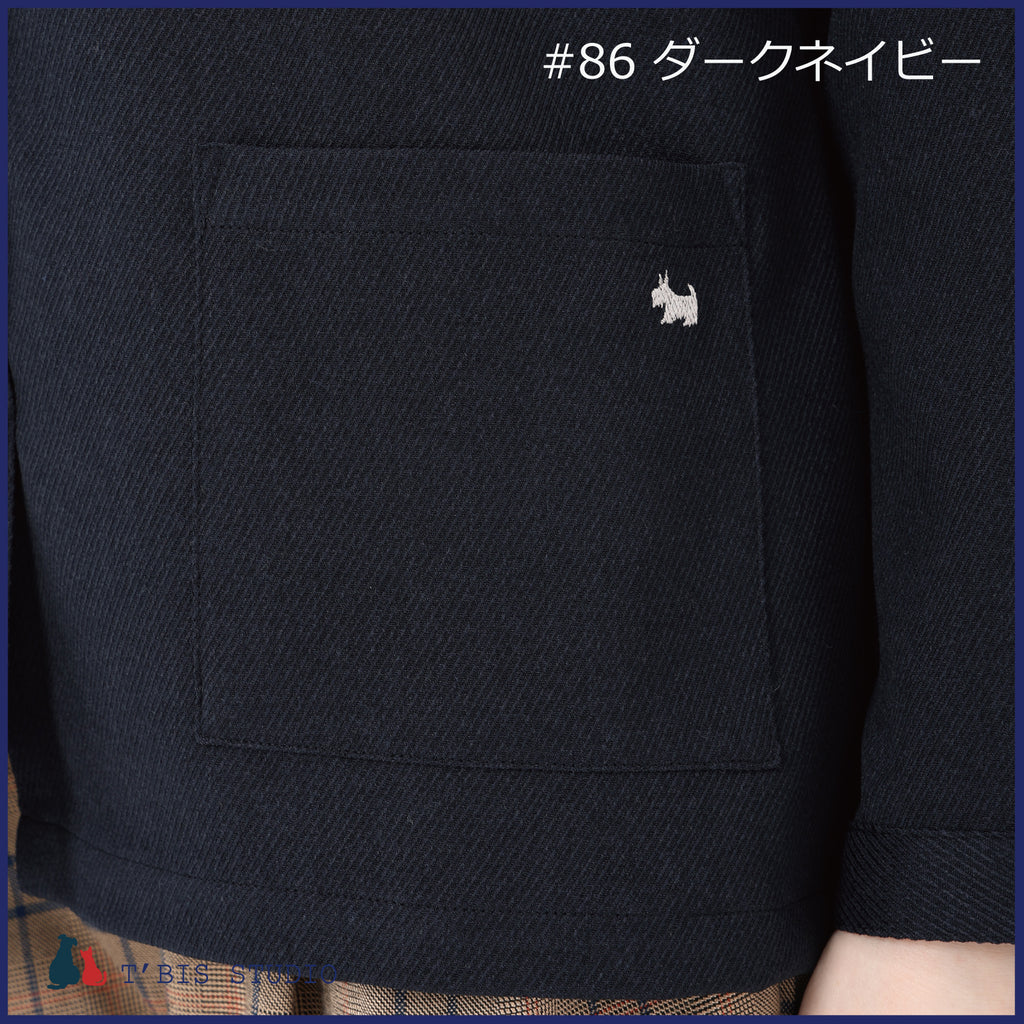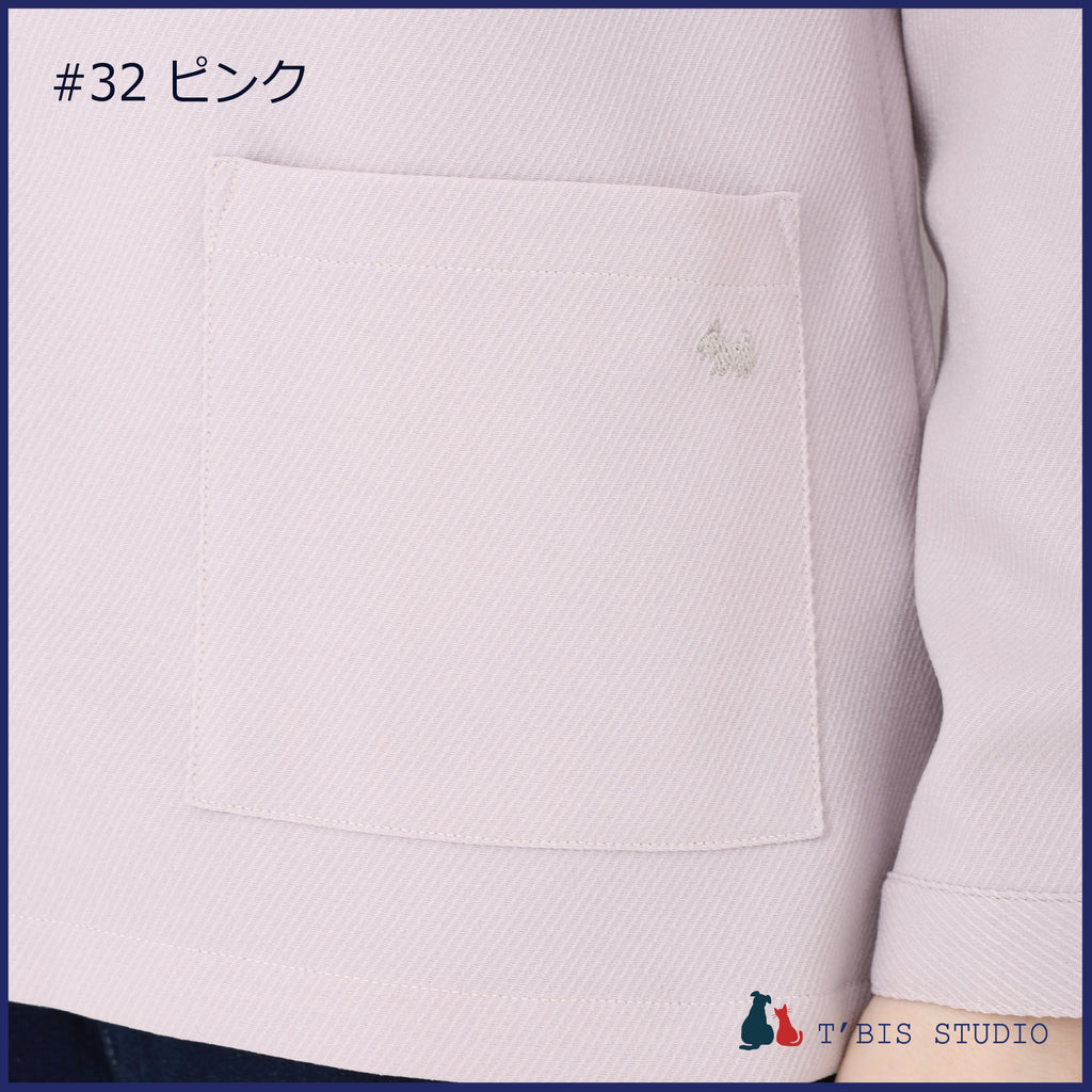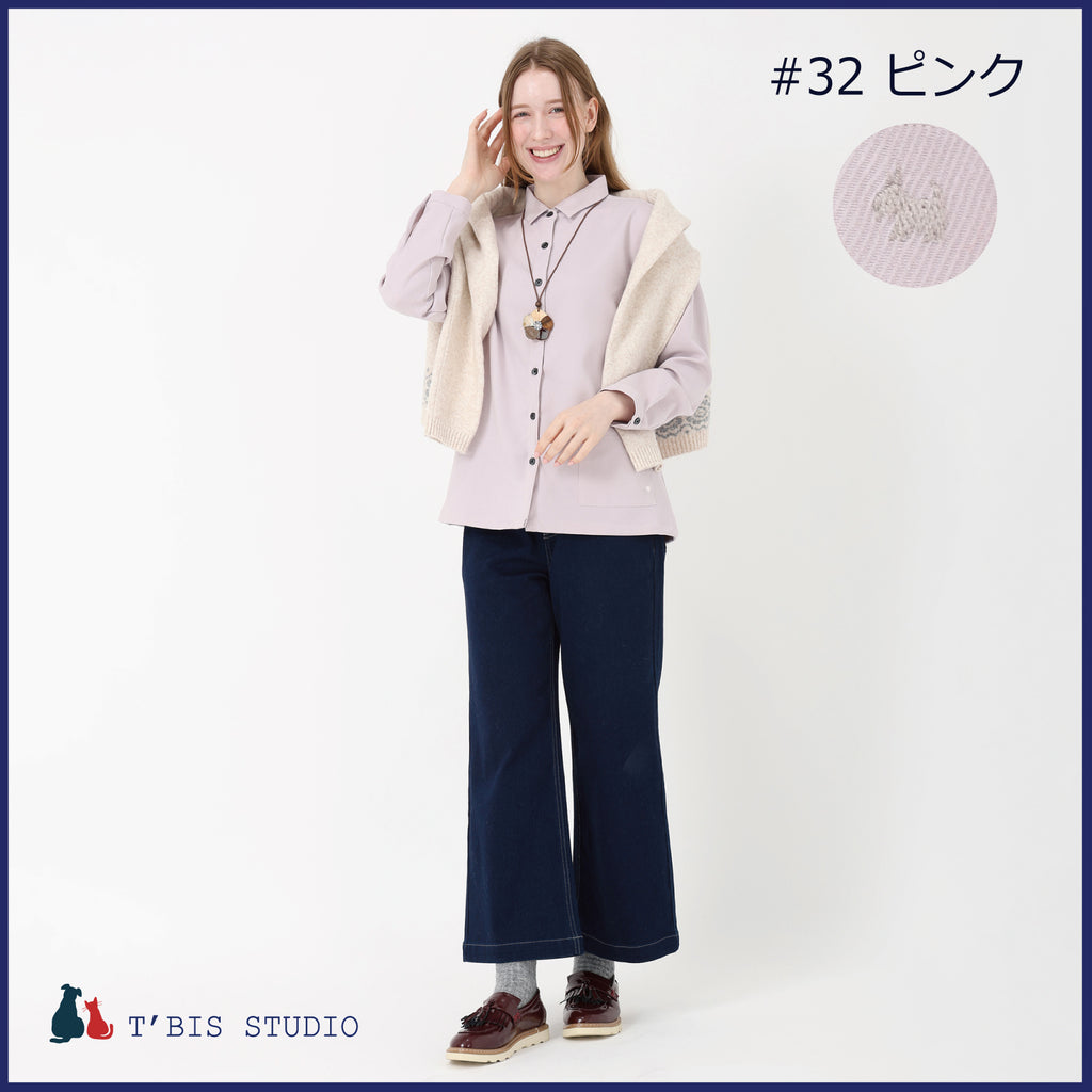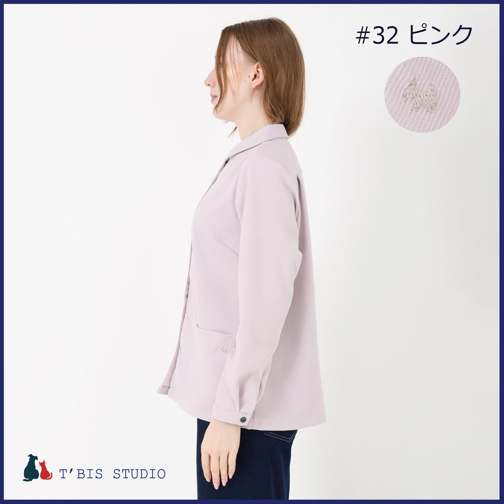 【日本製】長袖ウールライク テリア刺繍ポケット付シャツ 160103