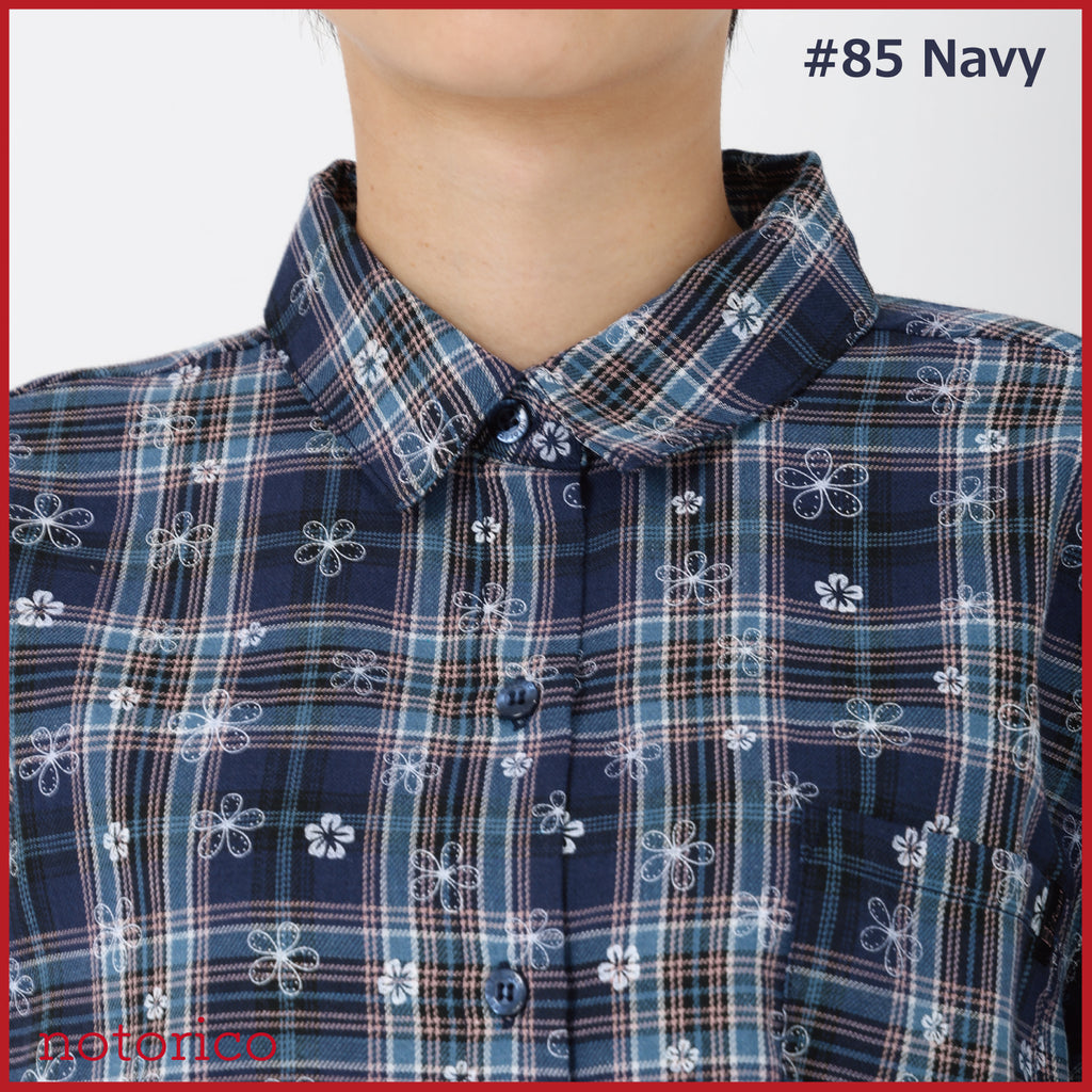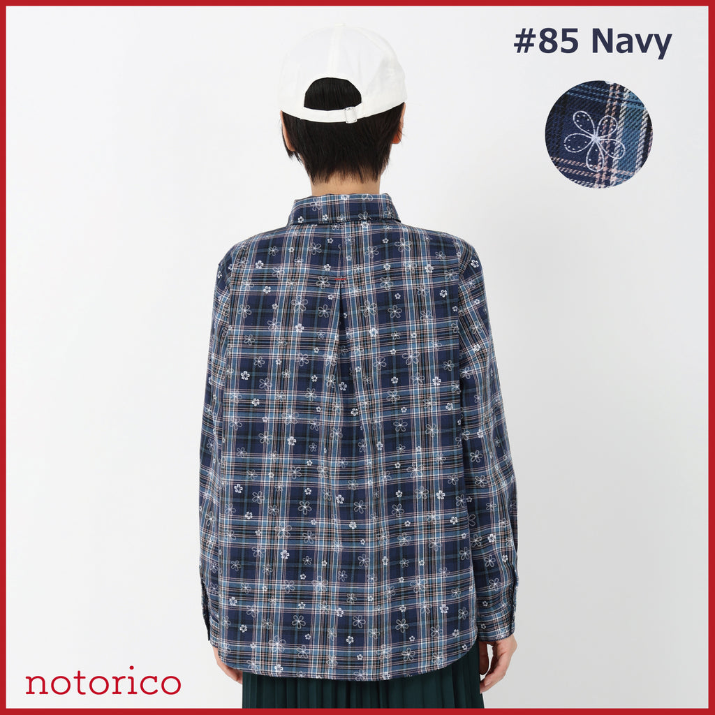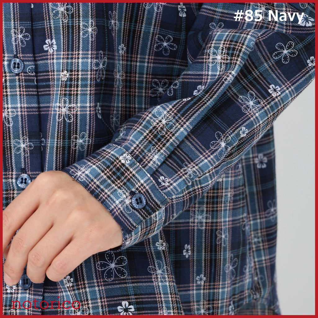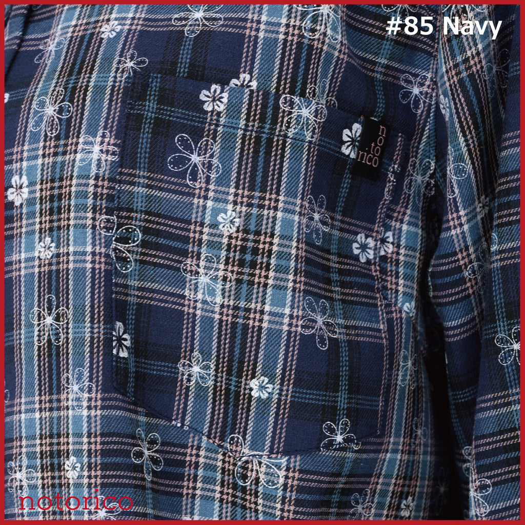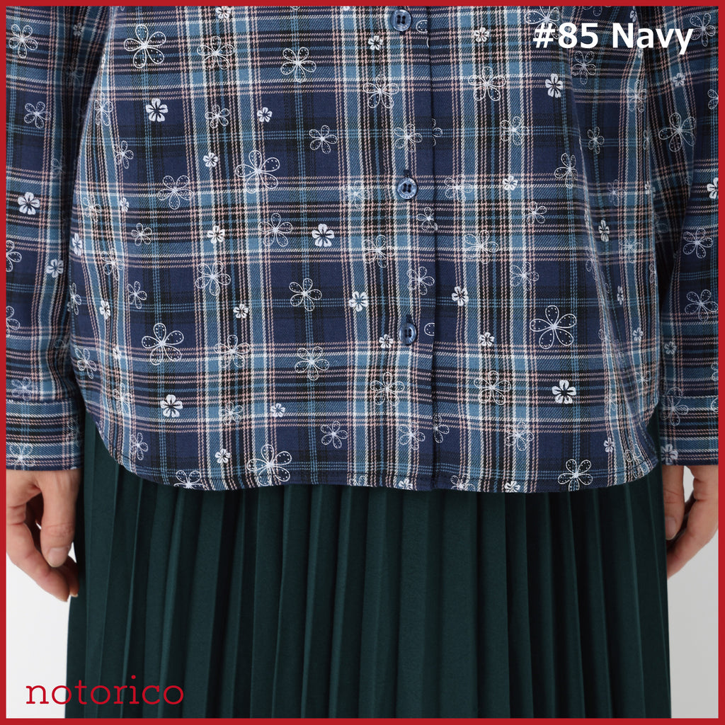 notorico 長袖タータンチェック花柄プリントシャツ 757175