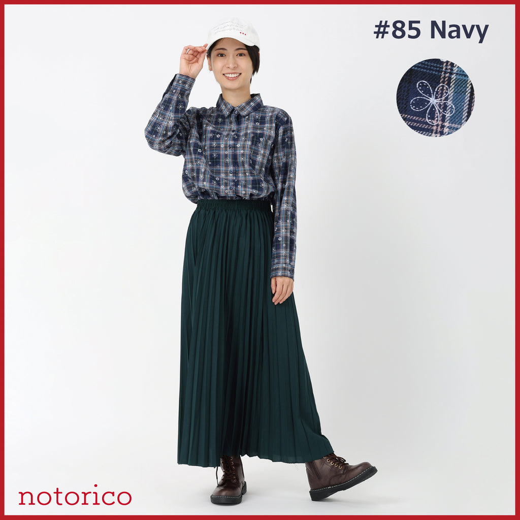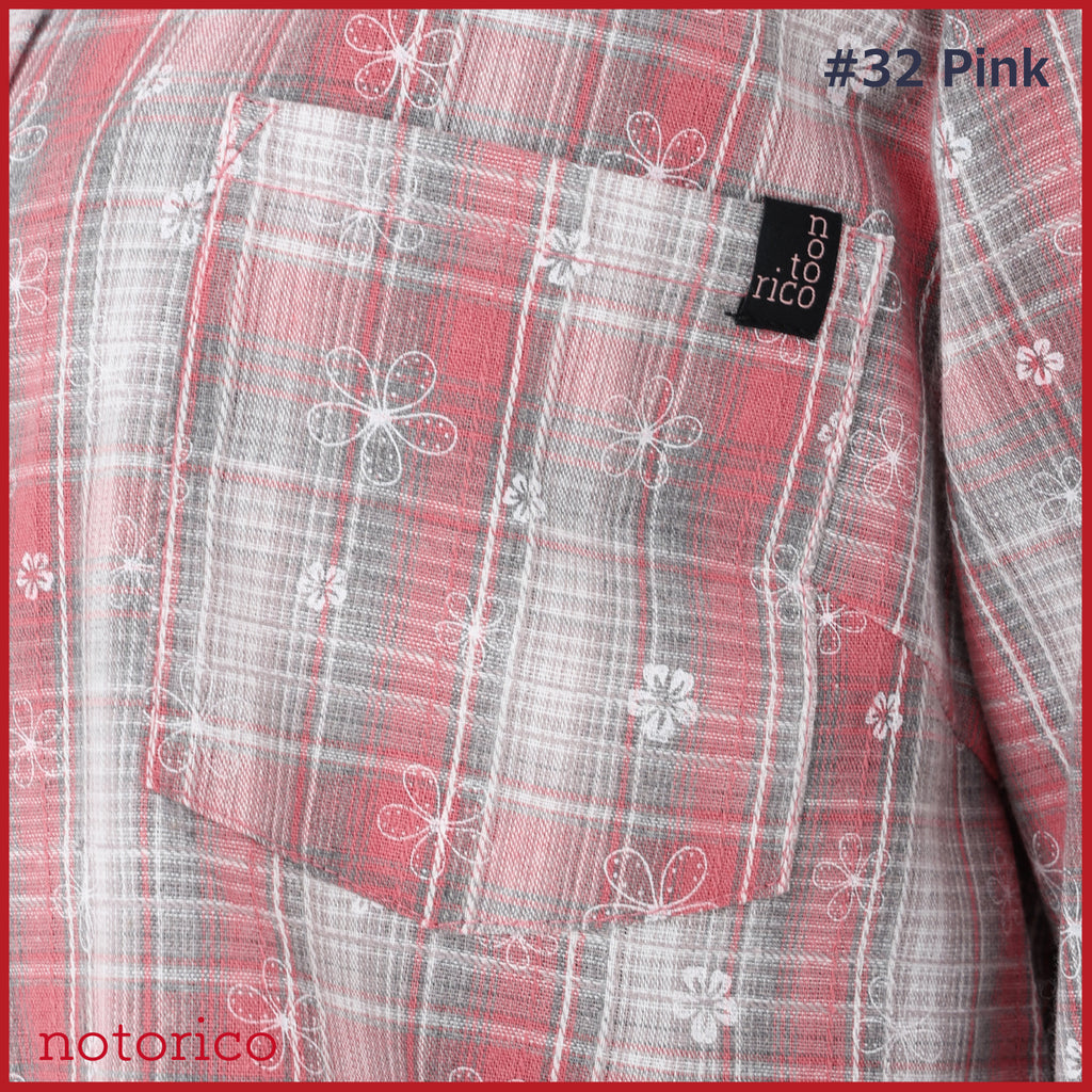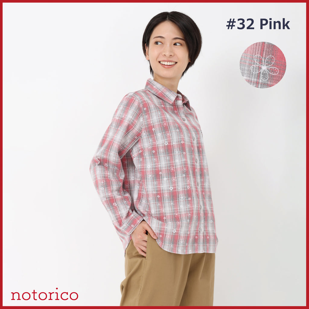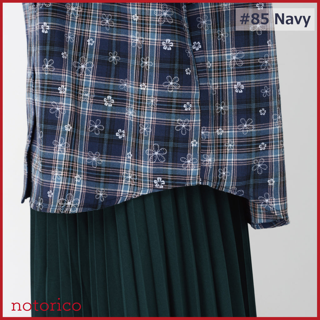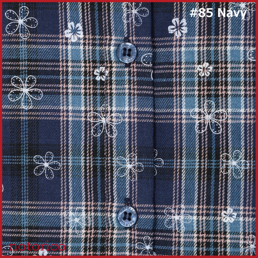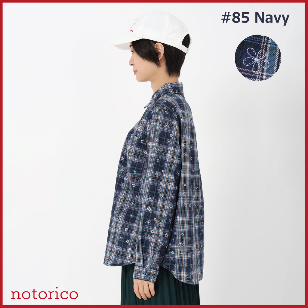 notorico 長袖タータンチェック花柄プリントシャツ 757175