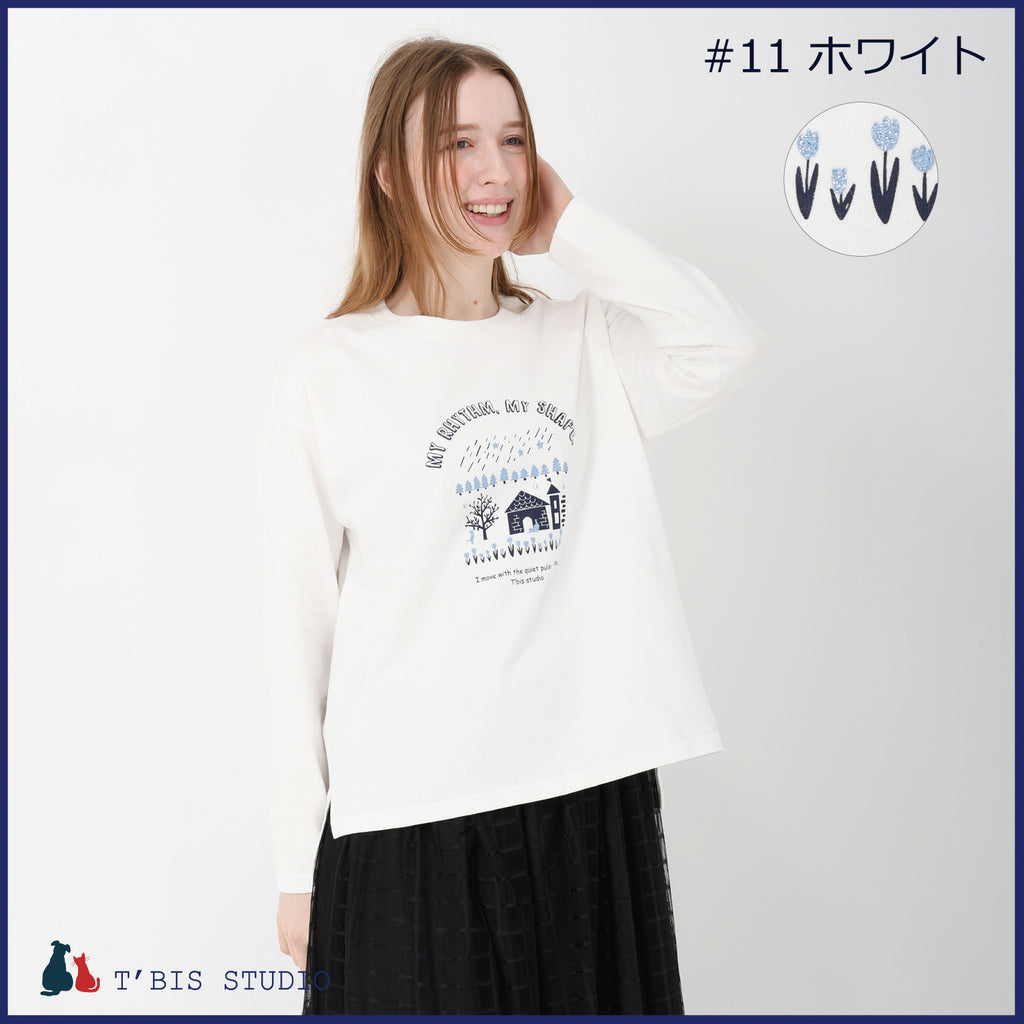 【LLサイズあり】長袖ふくれジャカードネコ刺繍ハイネックカットソー 156657