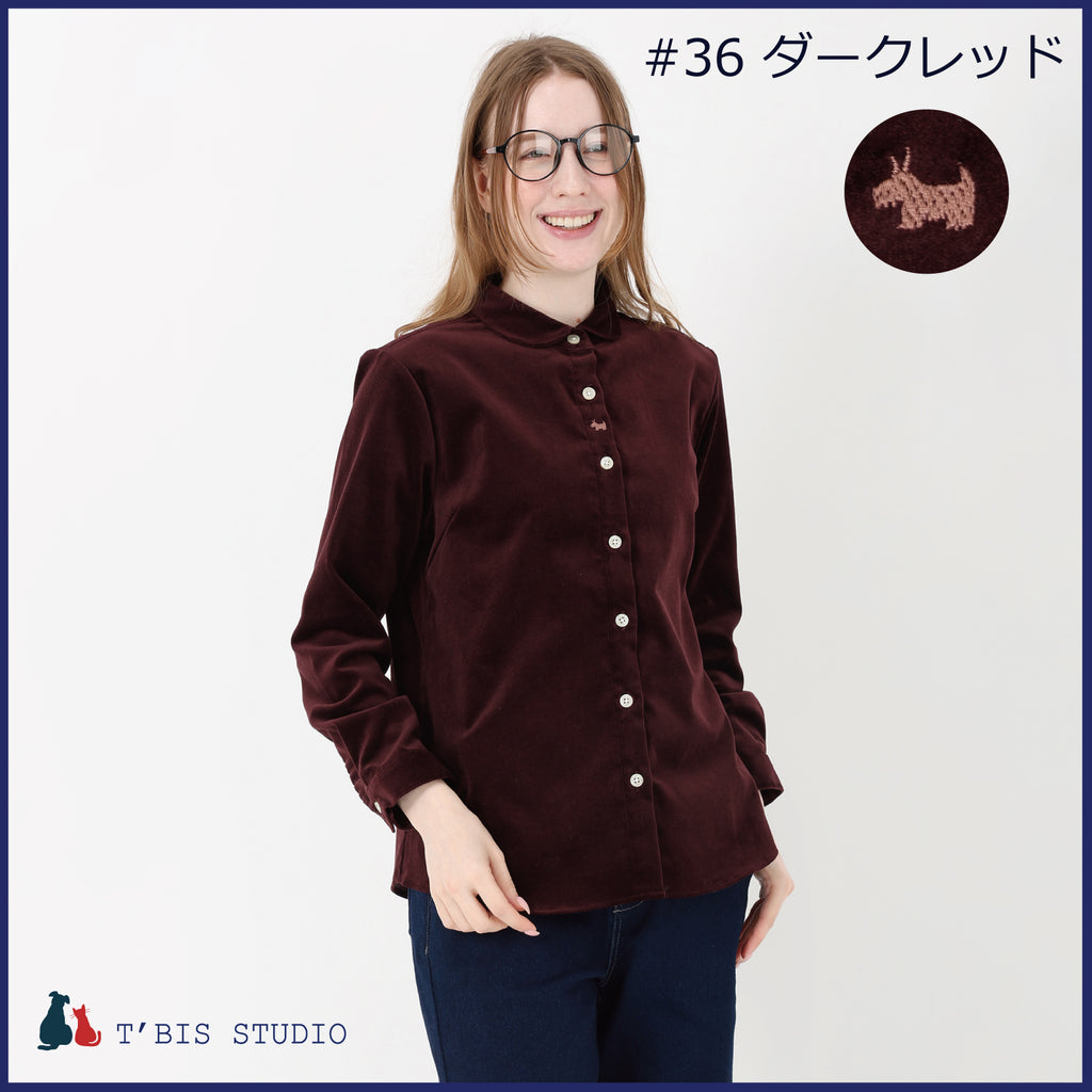 長袖ステッチ刺繍コーデュロイシャツ 158111