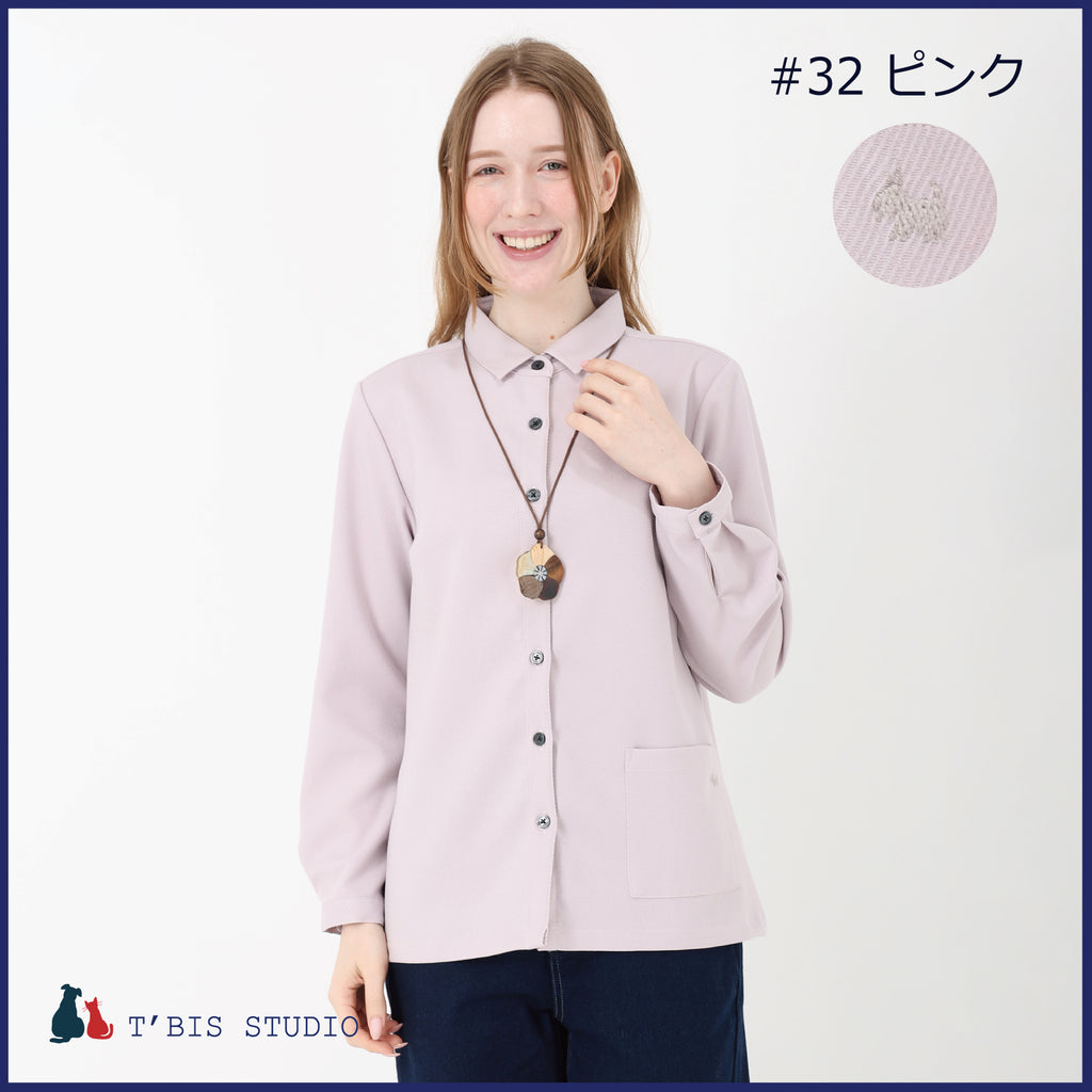 【日本製】長袖ウールライク テリア刺繍ポケット付シャツ 160103
