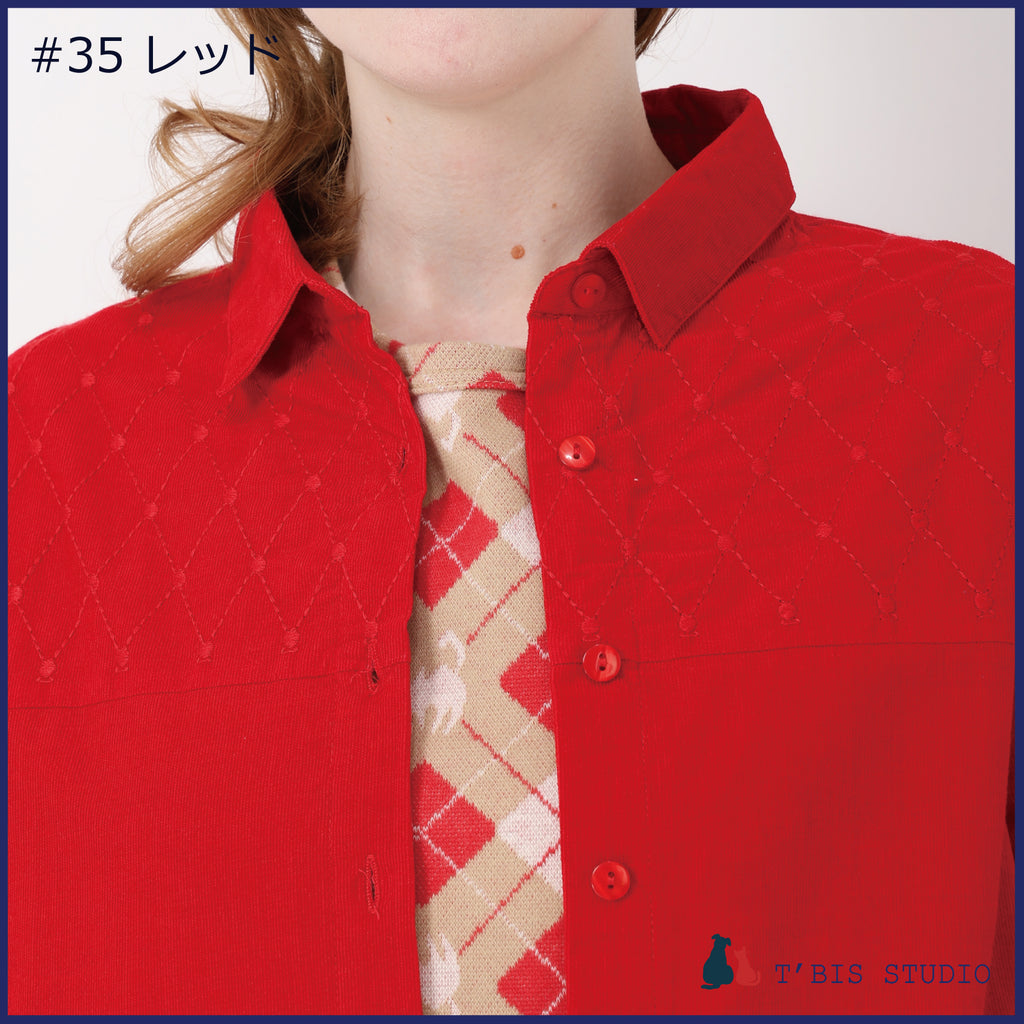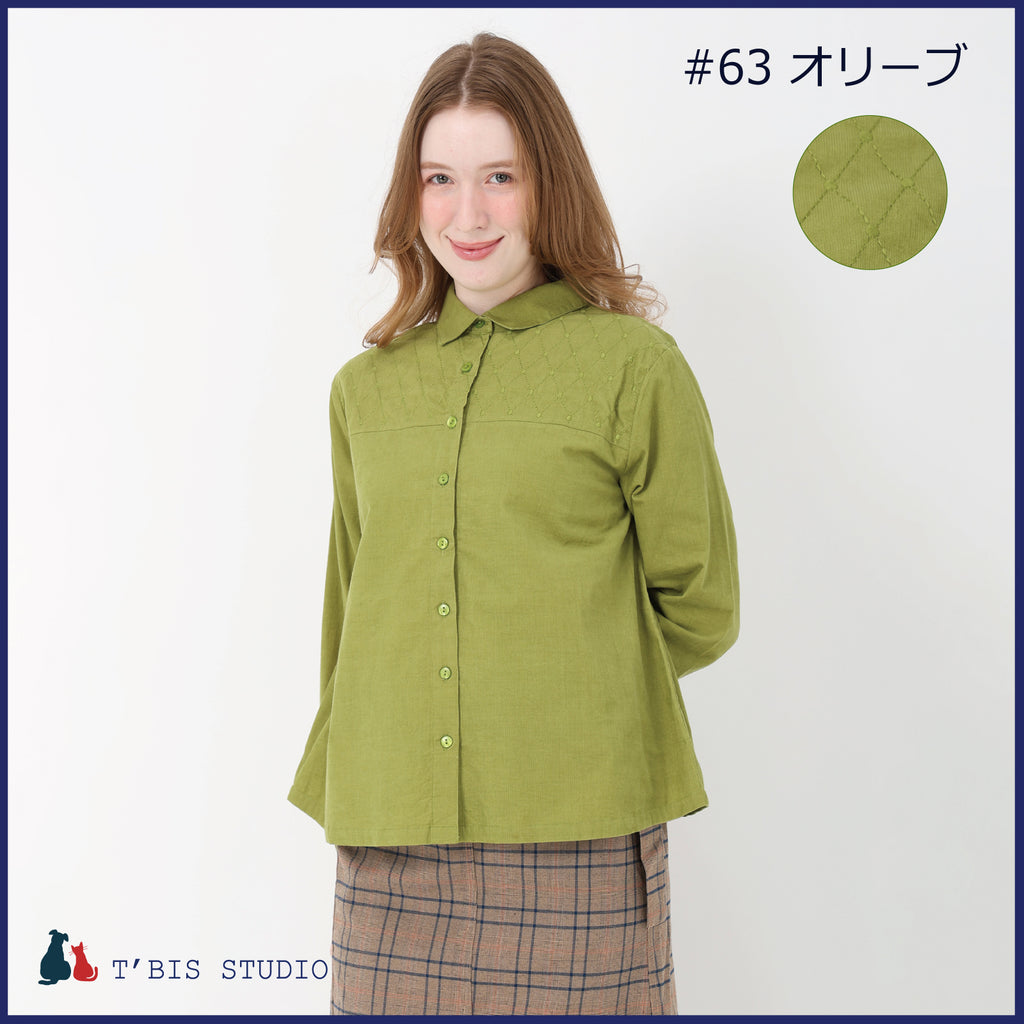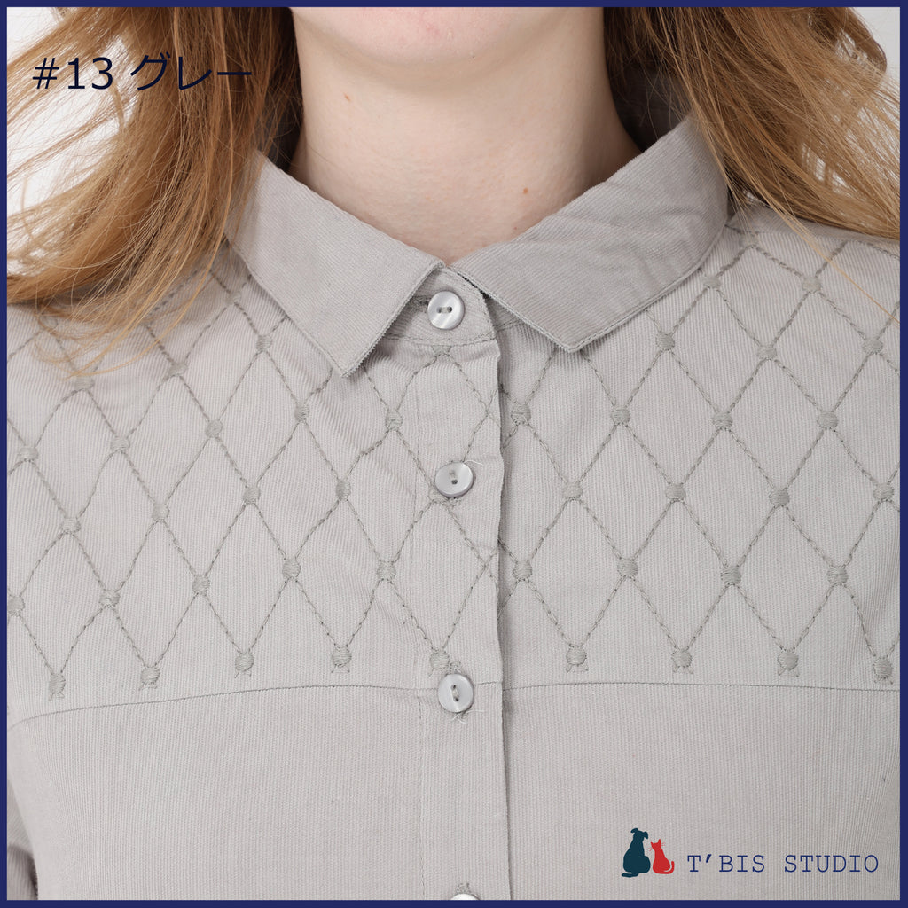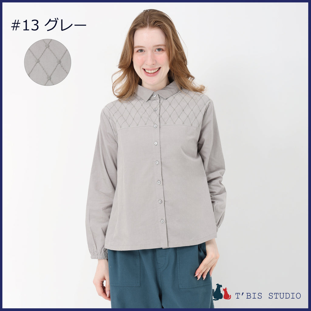 長袖ステッチ刺繍コーデュロイシャツ 158111