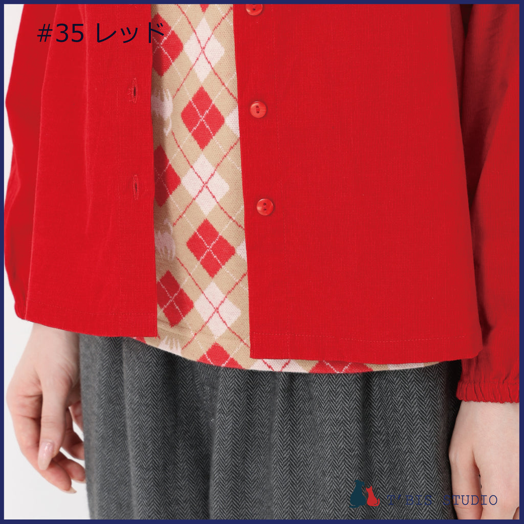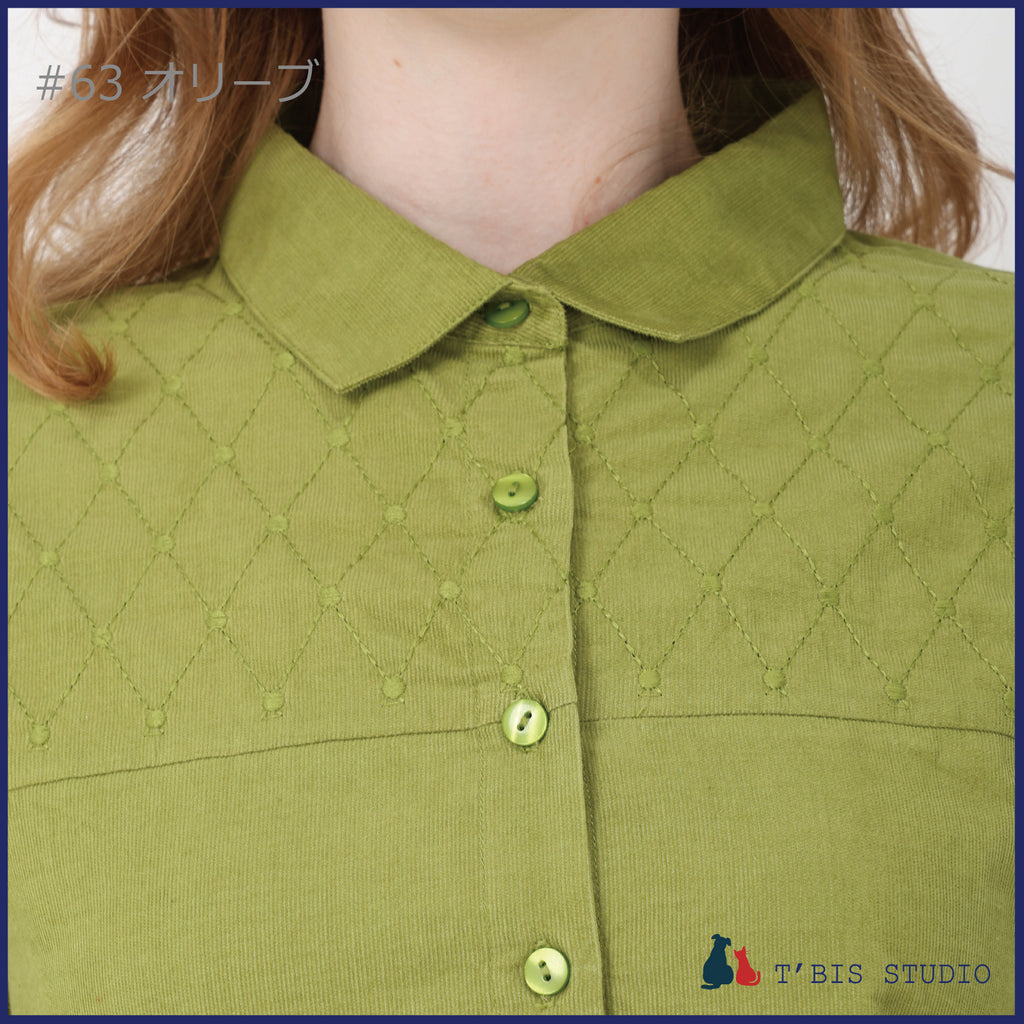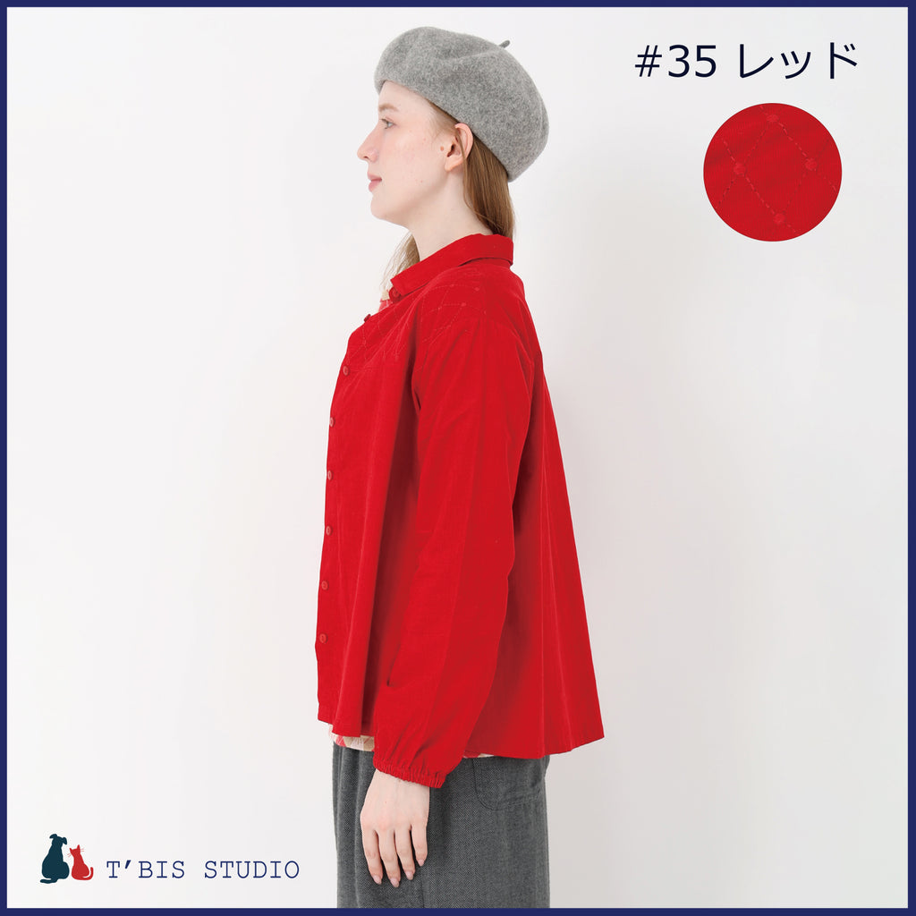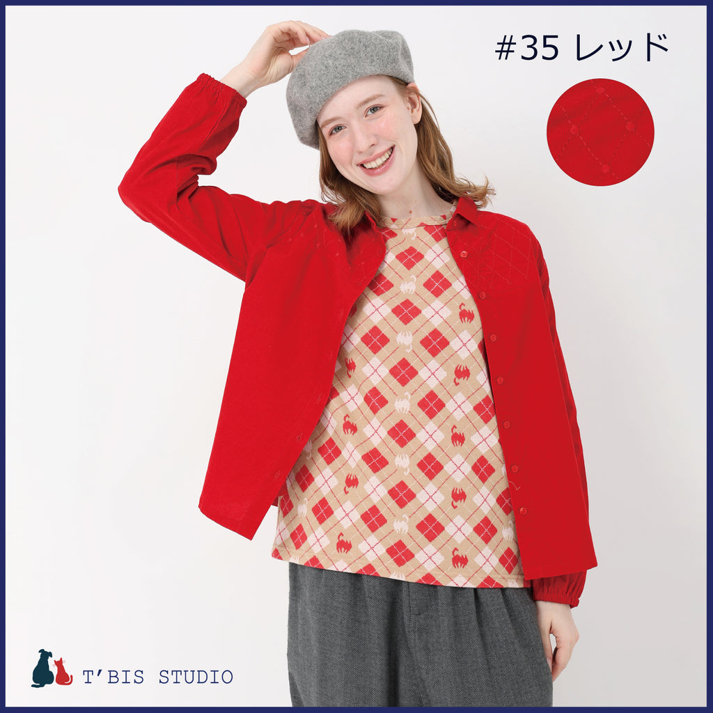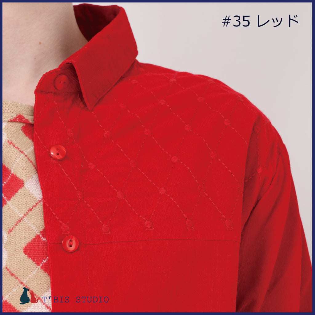 長袖ステッチ刺繍コーデュロイシャツ 158111