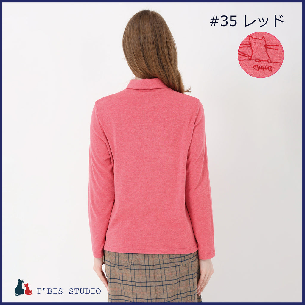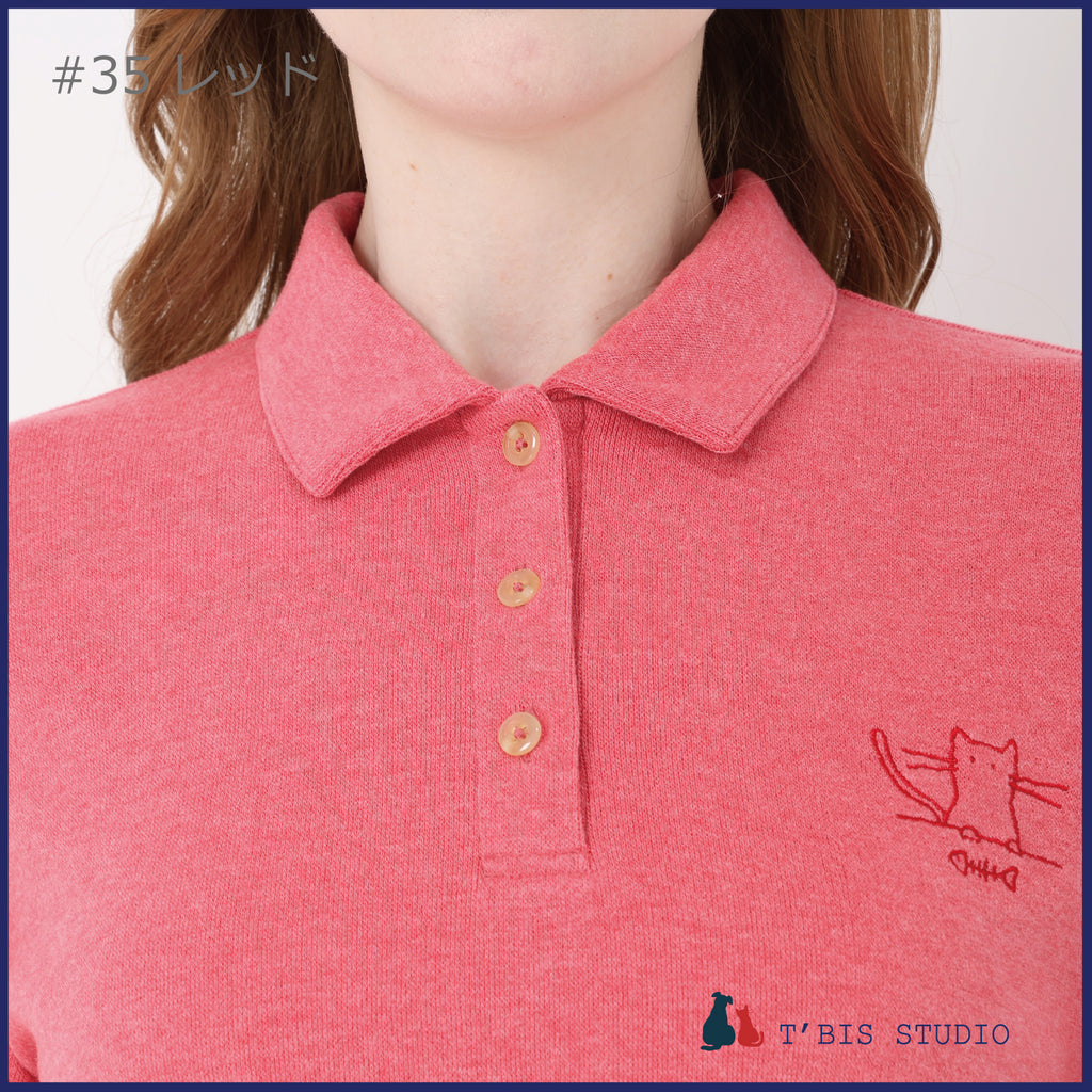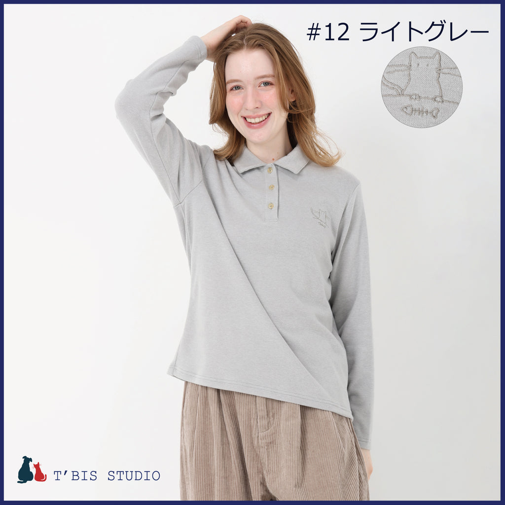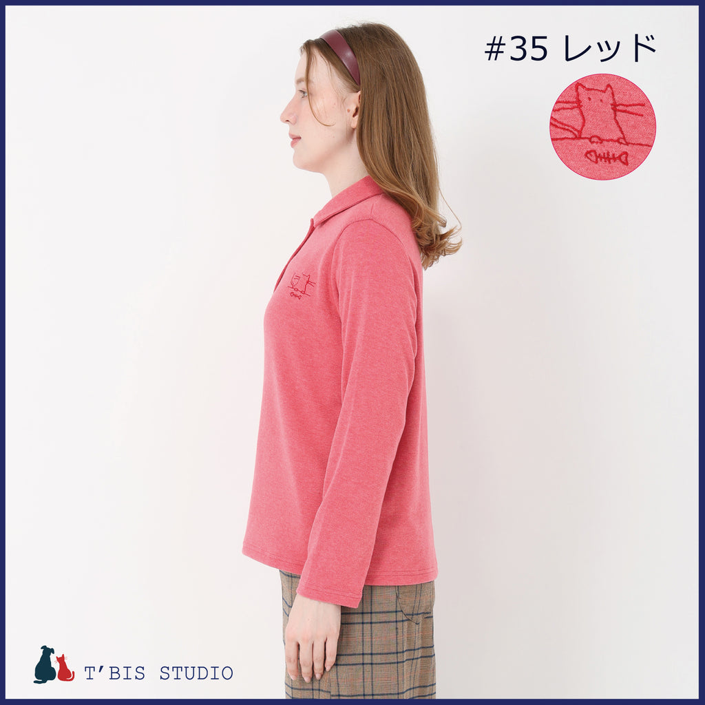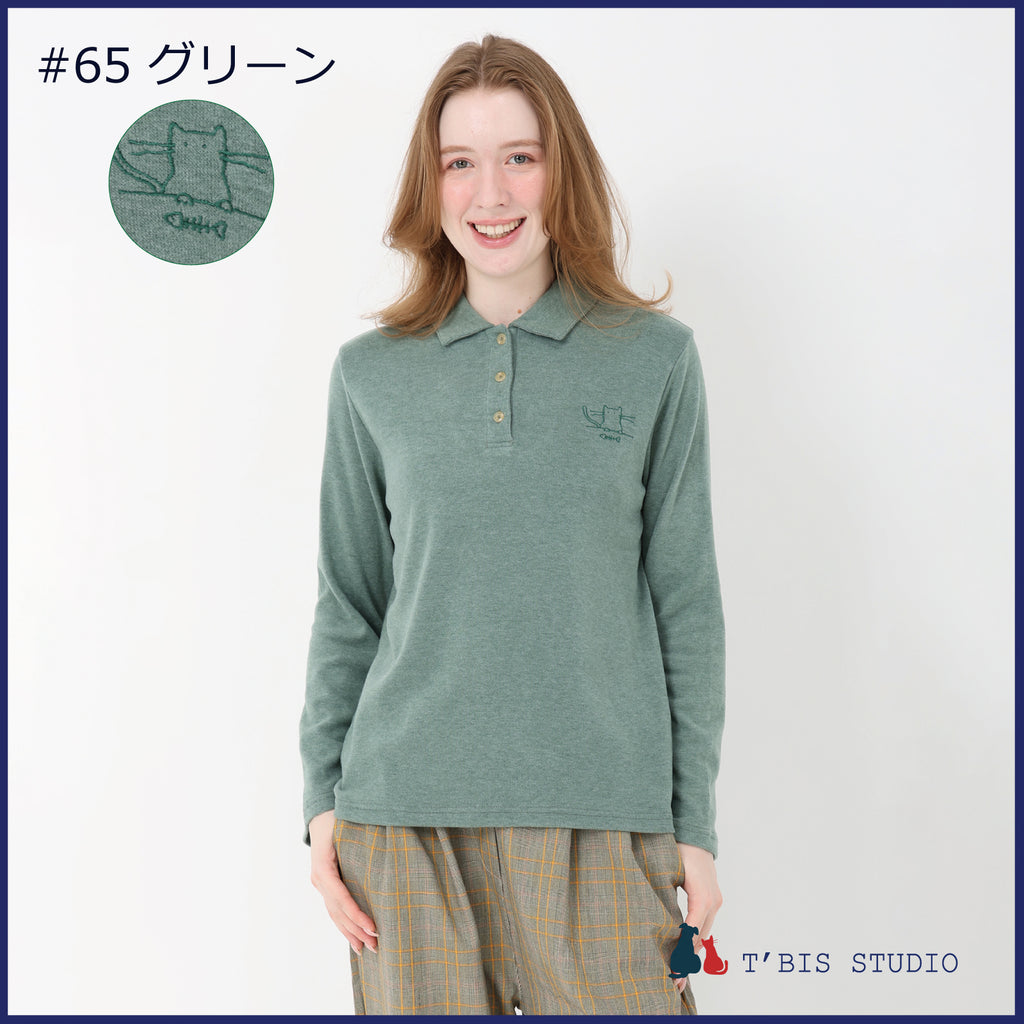 【日本製】長袖ピーチ起毛猫刺繍ポロシャツ 158504