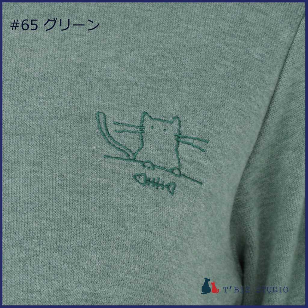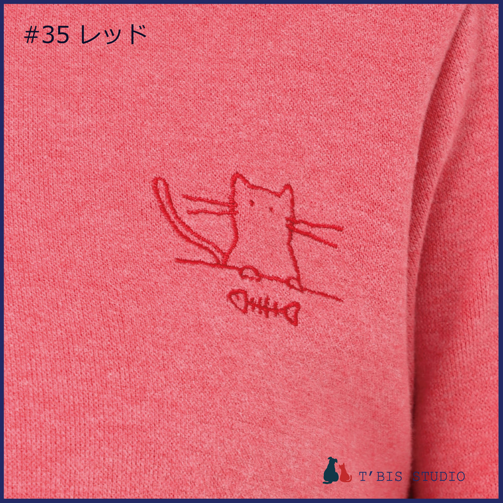 ・胸元に猫の刺繍をあしらい、さりげない遊び心をプラス。大人のカジュアルスタイルにほんのり可愛さを添えます。